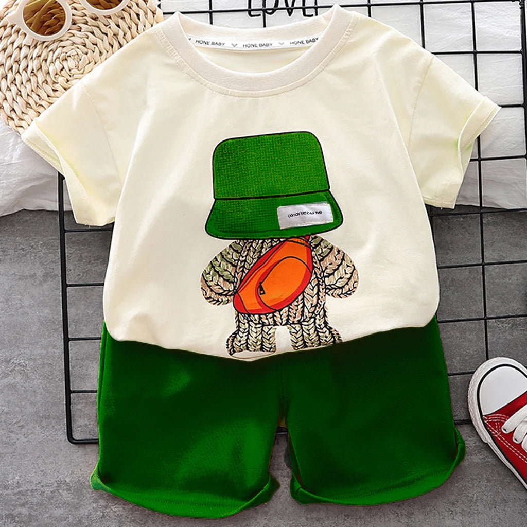 Boys Bear Print Sport Suits: Casual Summer Clothing