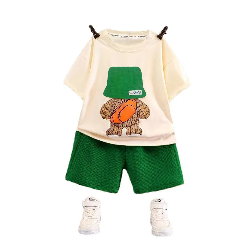 Introducing Our Boys Bear Print Sport Suits: Casual Summer Clothing