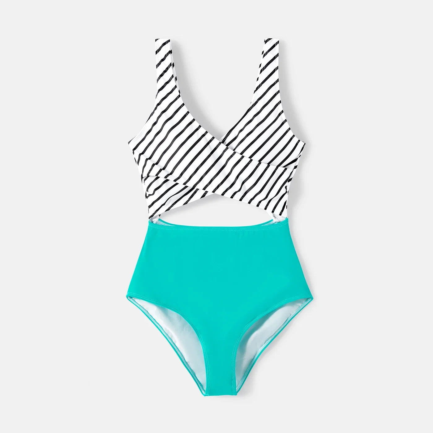 Family Matching Swimwear: Striped One-Piece & Colorblock Trunks, Summer Ready