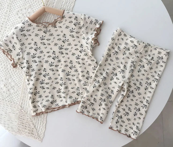 This adorable sleepwear set features a charming floral print design that adds a touch of sweetness to bedtime. The comfortable shorts and short-sleeved top are perfect for keeping your little one cool and cozy throughout the night. The O-neck collar ensures a comfortable fit, allowing for easy movement while sleeping.