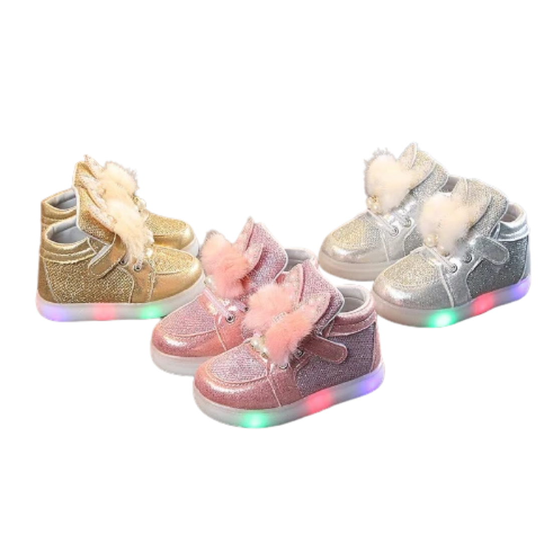 Our flexible Furry Rabbit Ear LED Light Up Shoes are a perfect match for your fun and jolly little girl. Make every walk of their daily moments be filled with enjoyment as they get excited with the built-in lights on the shoe's sole.