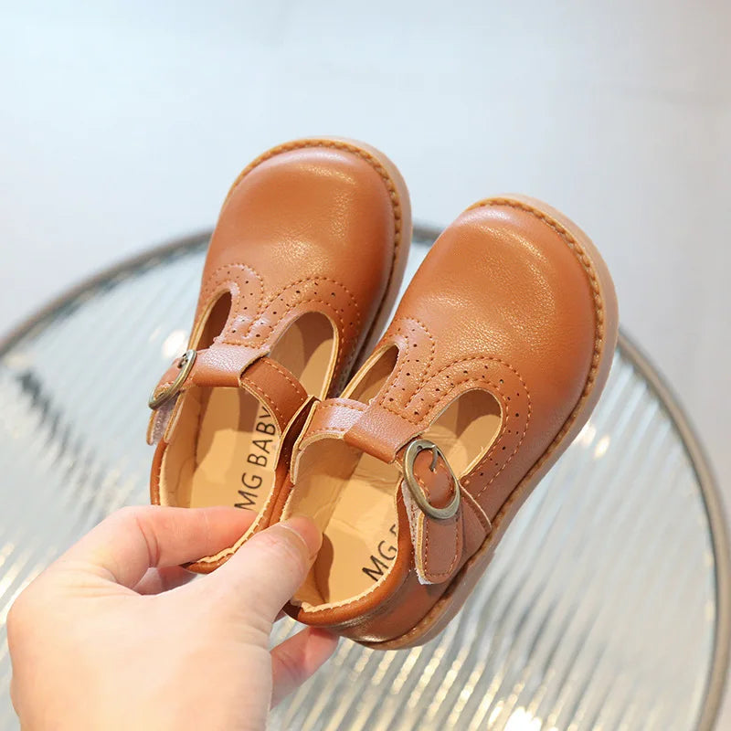 Experience Comfort and Style with Our Kids T-Strap Leather Flats!