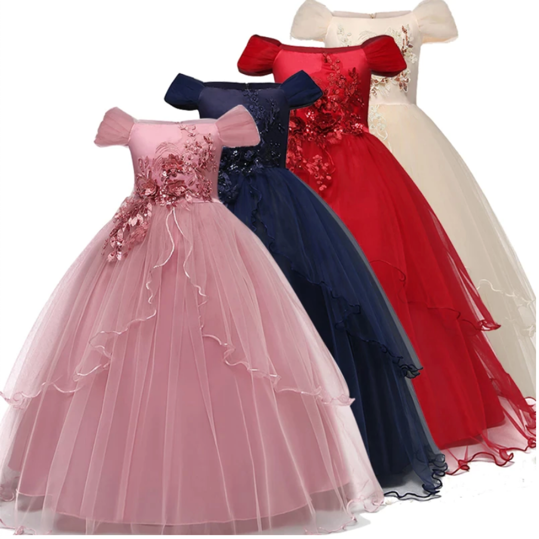 Long Embroidered Flower Girl Wedding Dress