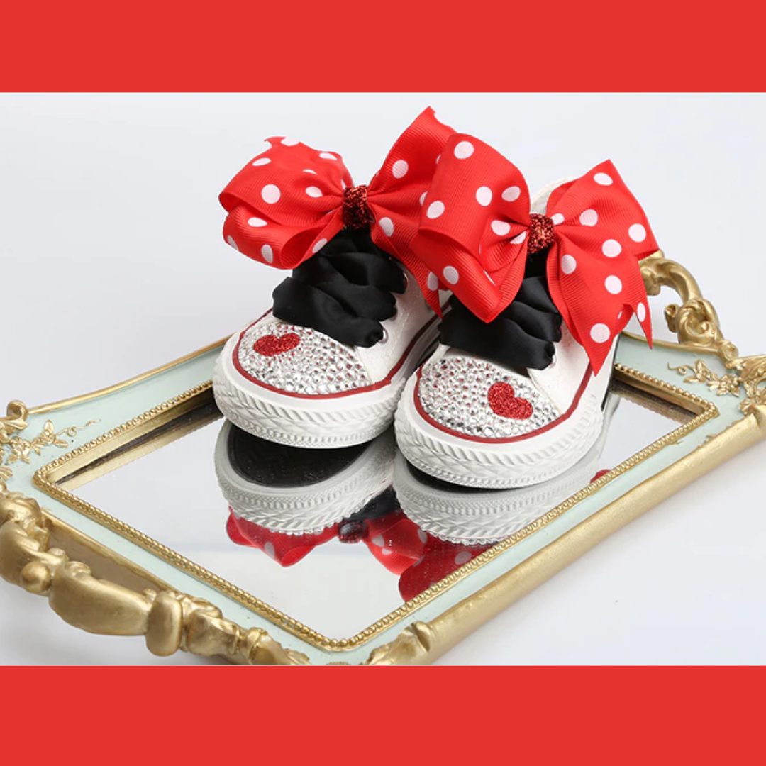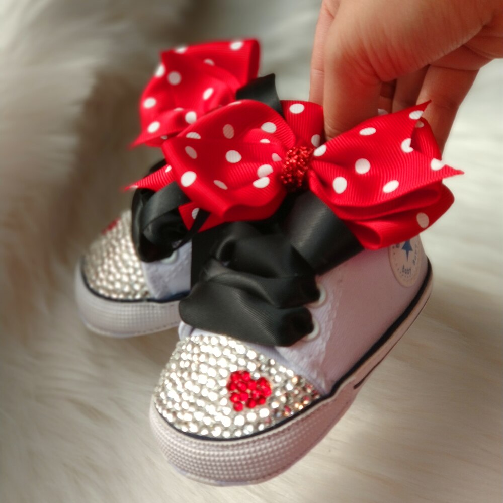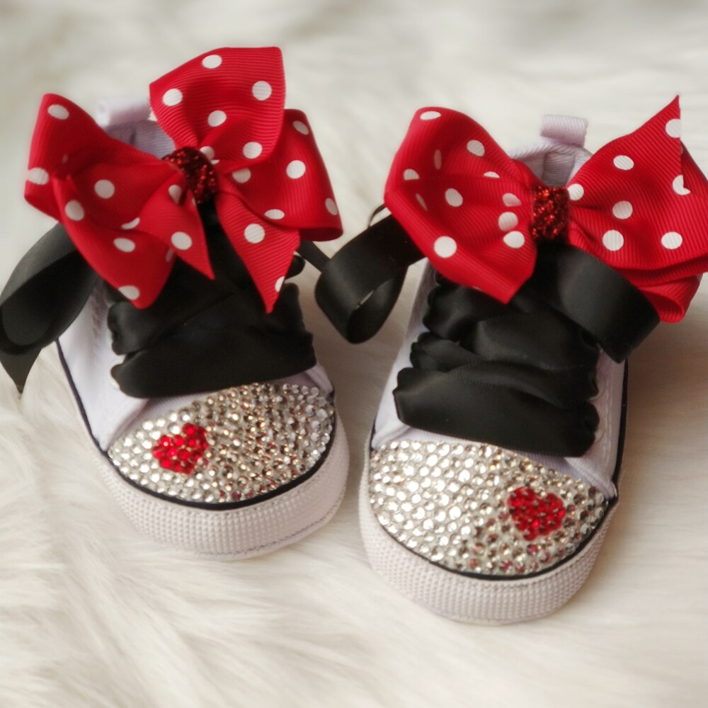 - Stunning hand-made baby shoes with adorable polka dots bowknot.