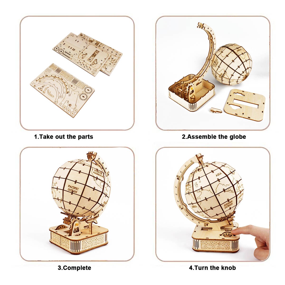 This is a DIY Kinetic Globe with Stand 3D wooden puzzle. It's a great educational puzzle toy for both kids & adults. Assemble all the pieces together and learn more about the world.