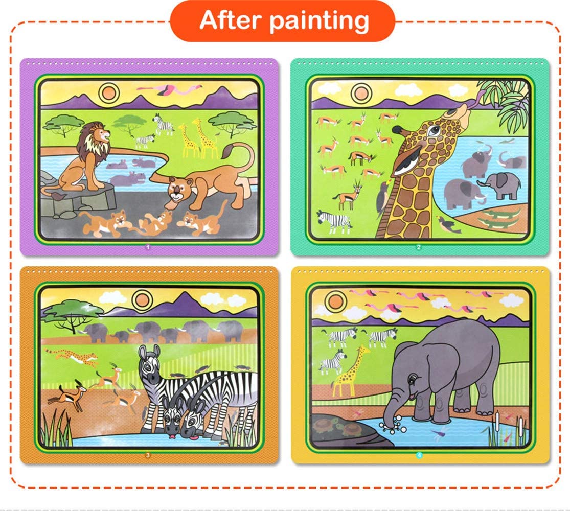 The Magic Water Drawing Book For Kids helps to recognize colors and animals, develop the child’s observation ability and learn more knowledge.