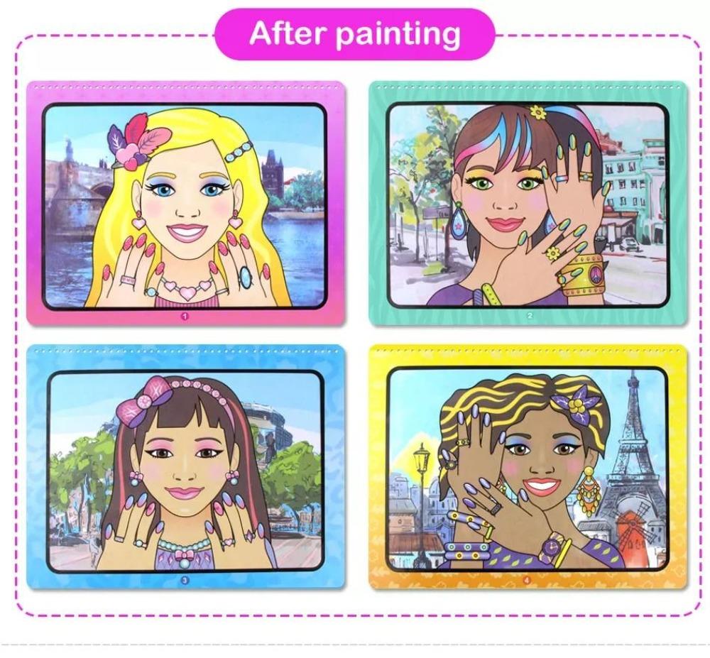 Once colored, the pictures are very vivid and colorful. As soon as they dry the colored areas disappear and the pages can be colored again and again.