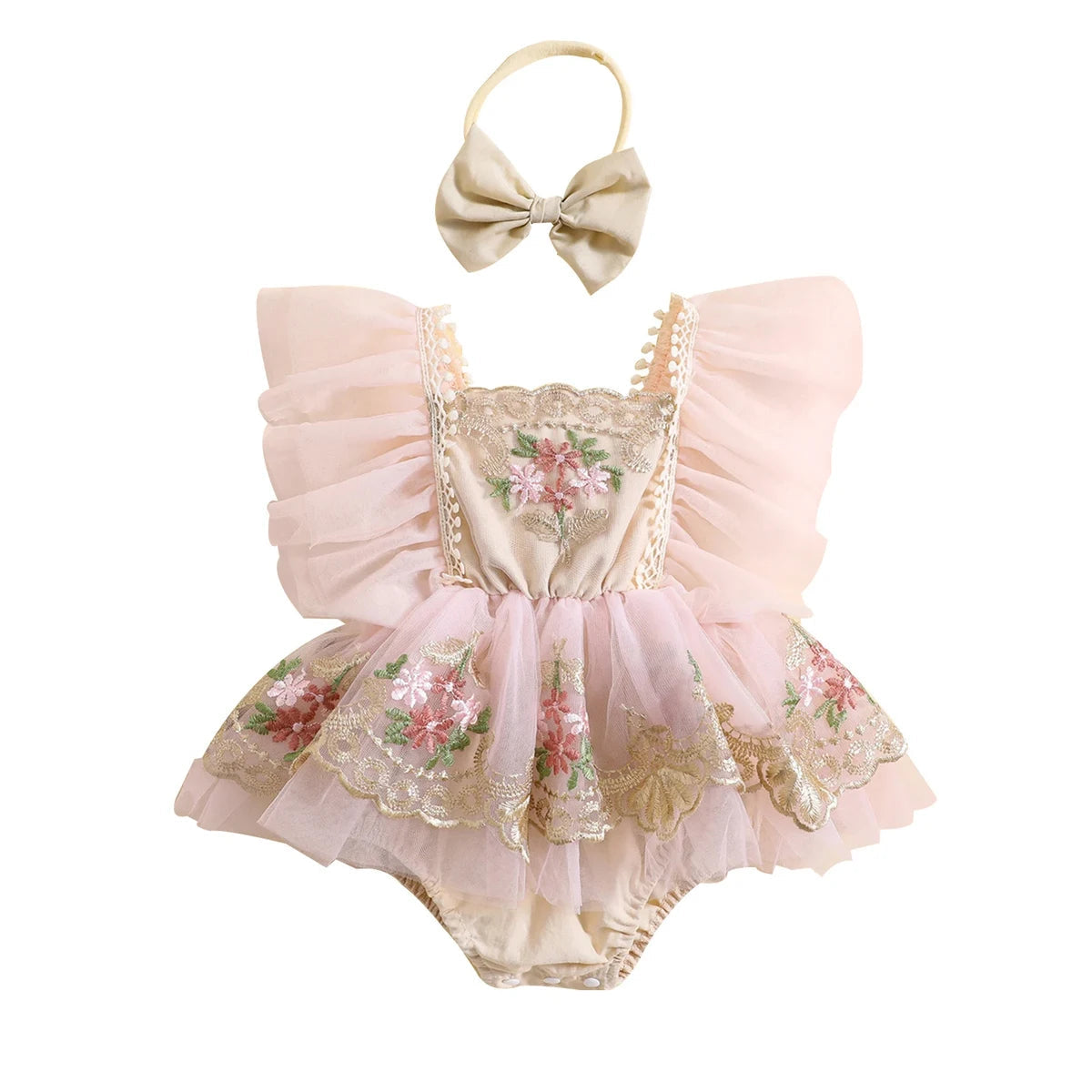 Floral Embroidered Lace Tulle Outfit + Matching Headband