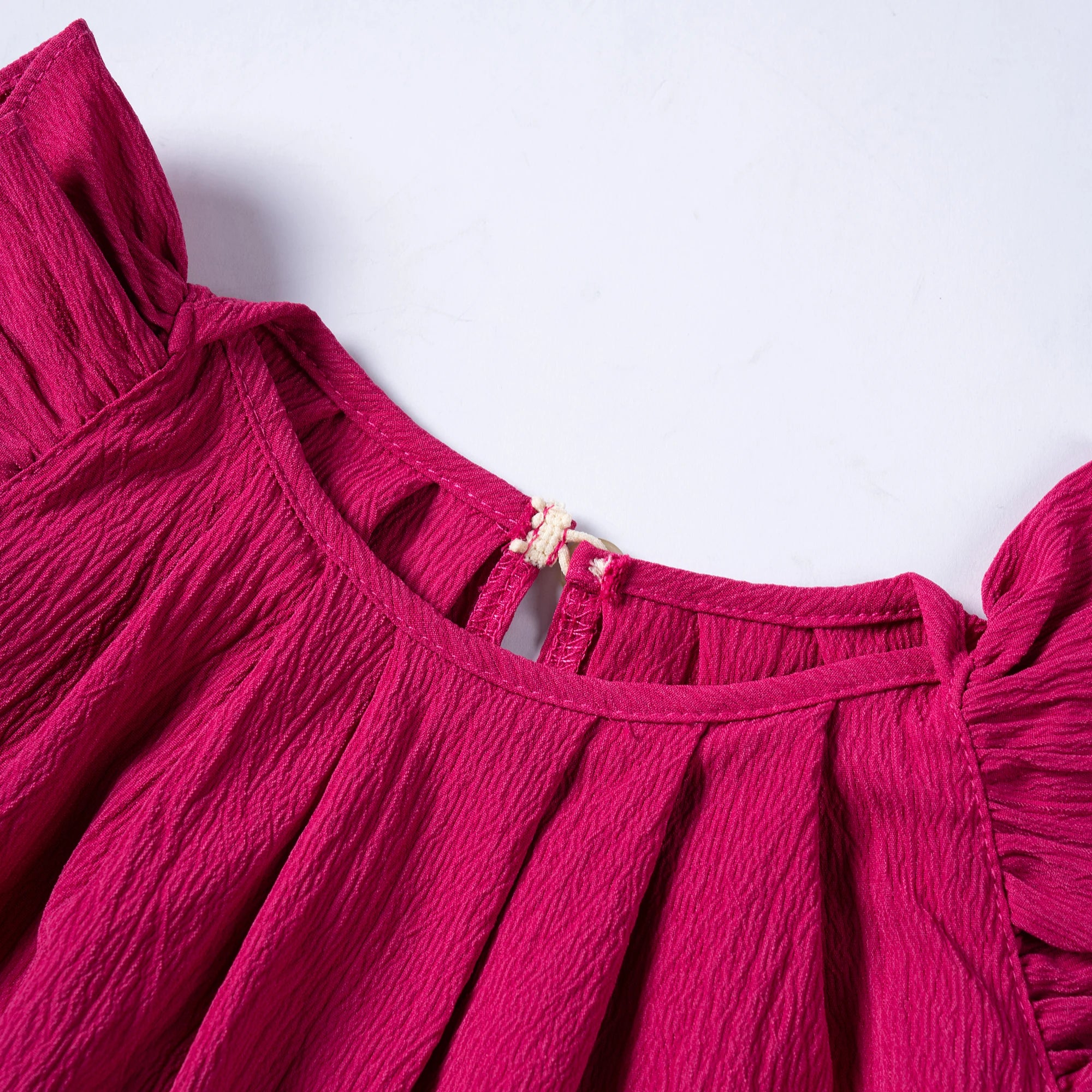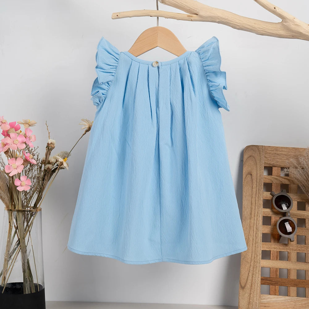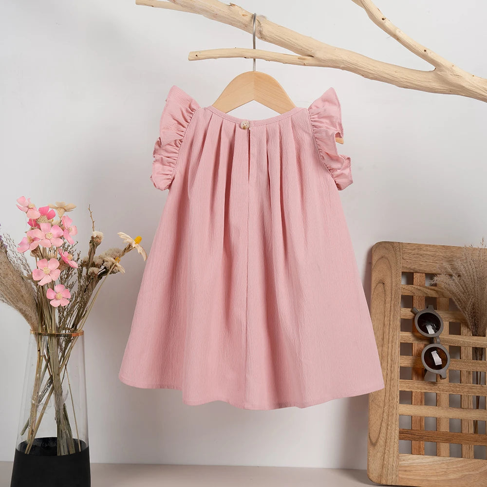 Step into the world of charming fashion with our Casual Summer Dress, featuring sweet little flying sleeves and designed for girls aged 9 months to 5 years. Crafted with care, this dress combines comfort, style, and playful elegance.