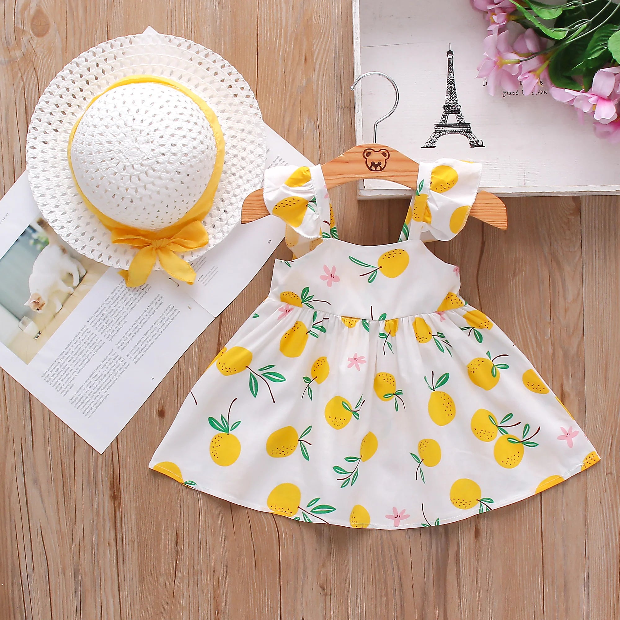 Fruit Print Cotton Dress with Matching Hat: Sweet Spring Style