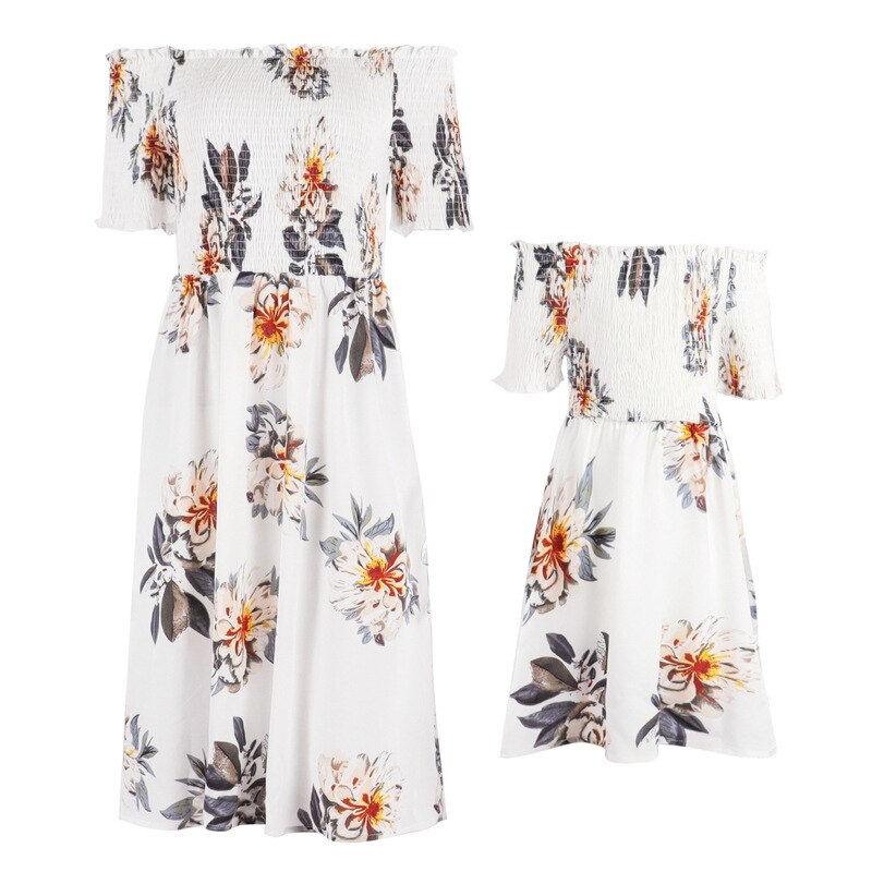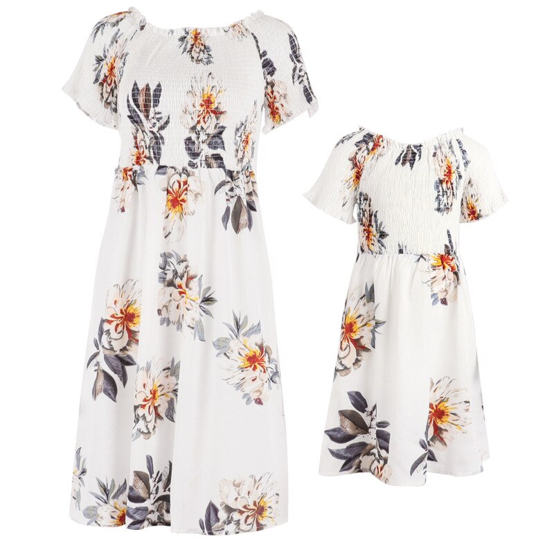 Set Of Cute Family Floral Dresses For Mom And Baby