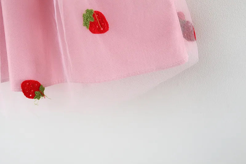 Strawberry Embroidery: Adorned with delightful strawberry embroidery, this dress brings a playful and cheerful vibe, adding an extra layer of cuteness.