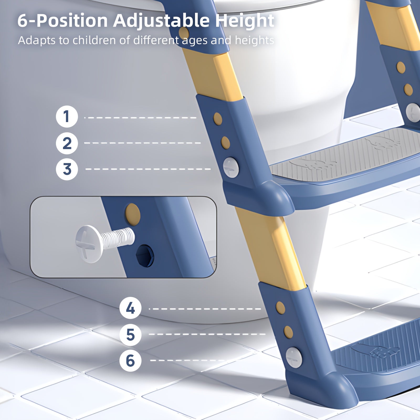 Toilet Potty Training Seat with Step Stool – Adjustable Height, Anti-Slip Base, Soft Cushion, Foldable, Comfortable for Toddlers