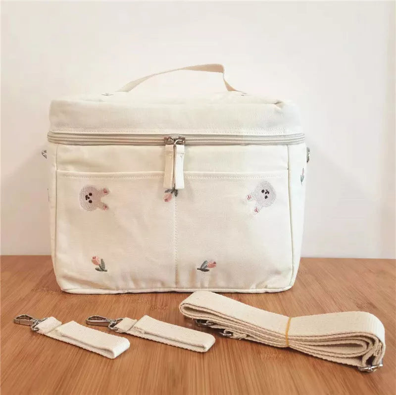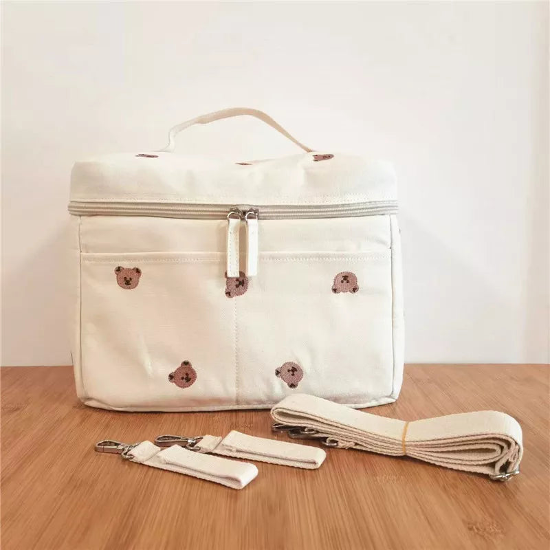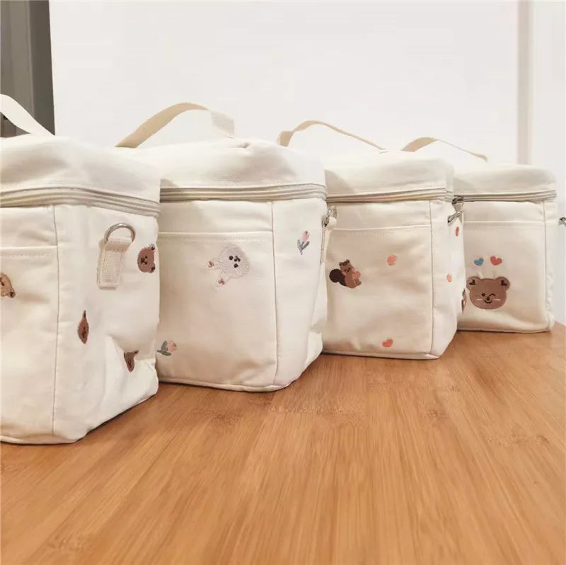 Elevate your parenting experience with our Baby Bottle Cooler Bag - a perfect blend of convenience and style. The zipper closure ensures the security of your items, while the high-quality cotton fabric adds comfort and durability.