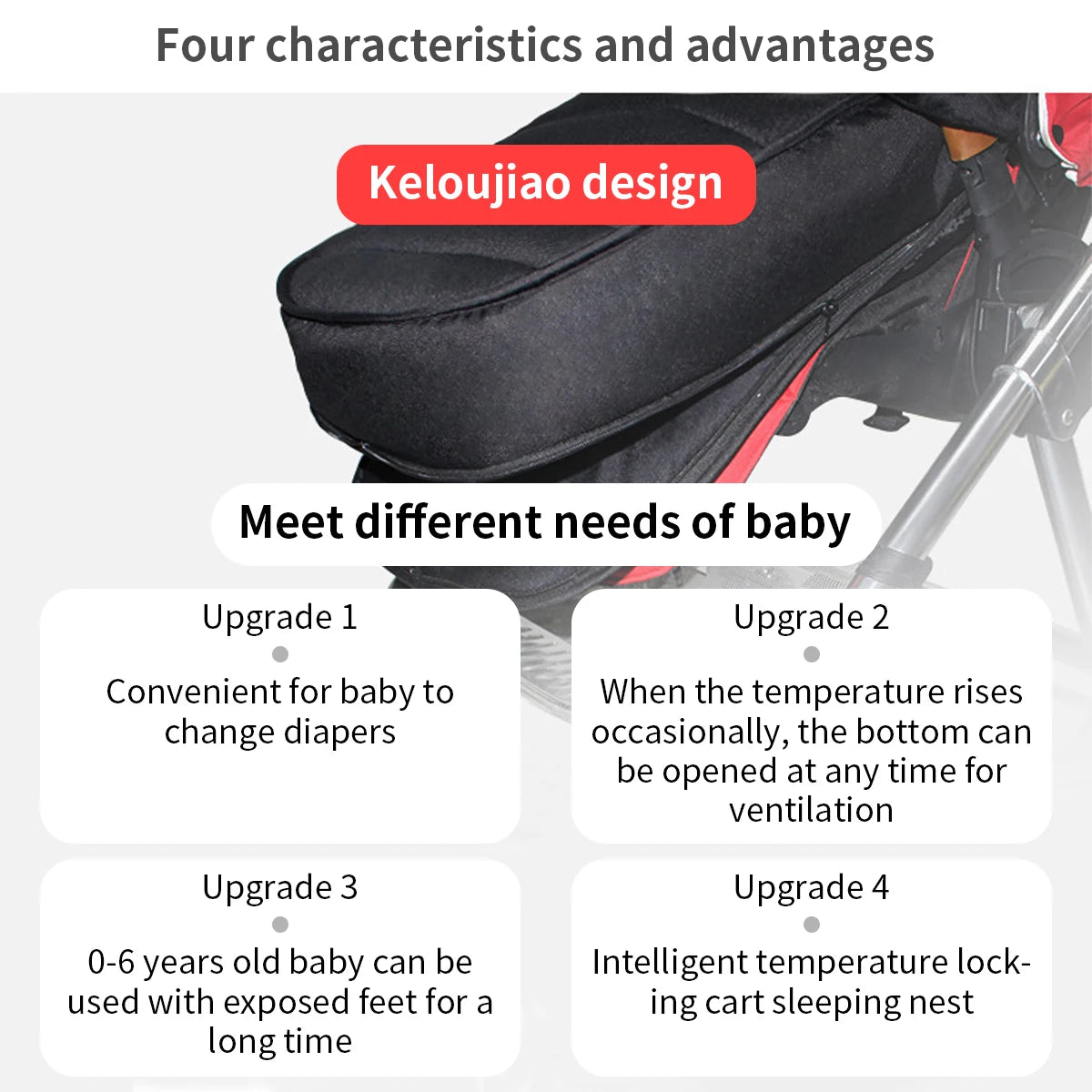 Keep Warm in Low Temperatures: Perfect for outings in low temperatures, this bag keeps your baby's legs warm, preventing frostbite and ensuring a cozy experience.