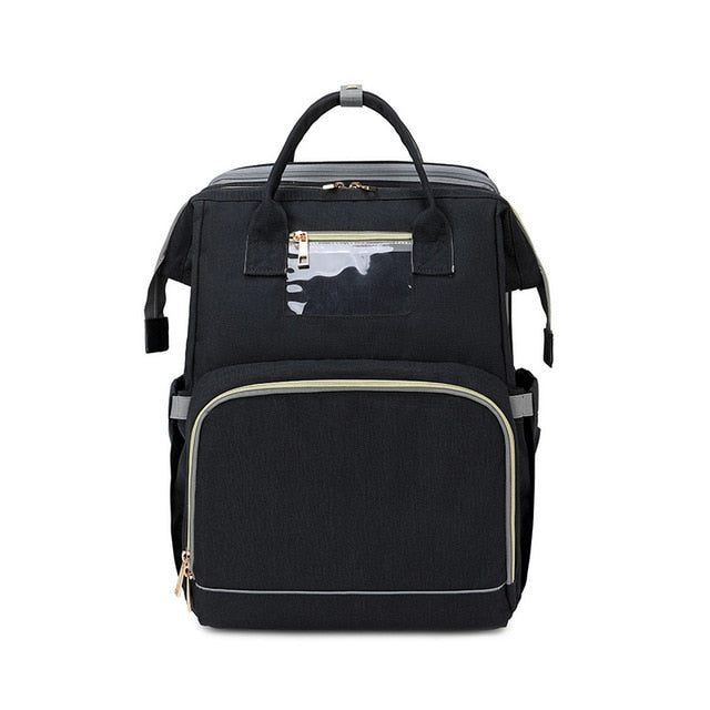 As parents, we know that babies have a lot of stuff and need more than a standard diaper bag, that's why we are here to offer you our new multifunctional diaper bag with a Folding Bed inside.