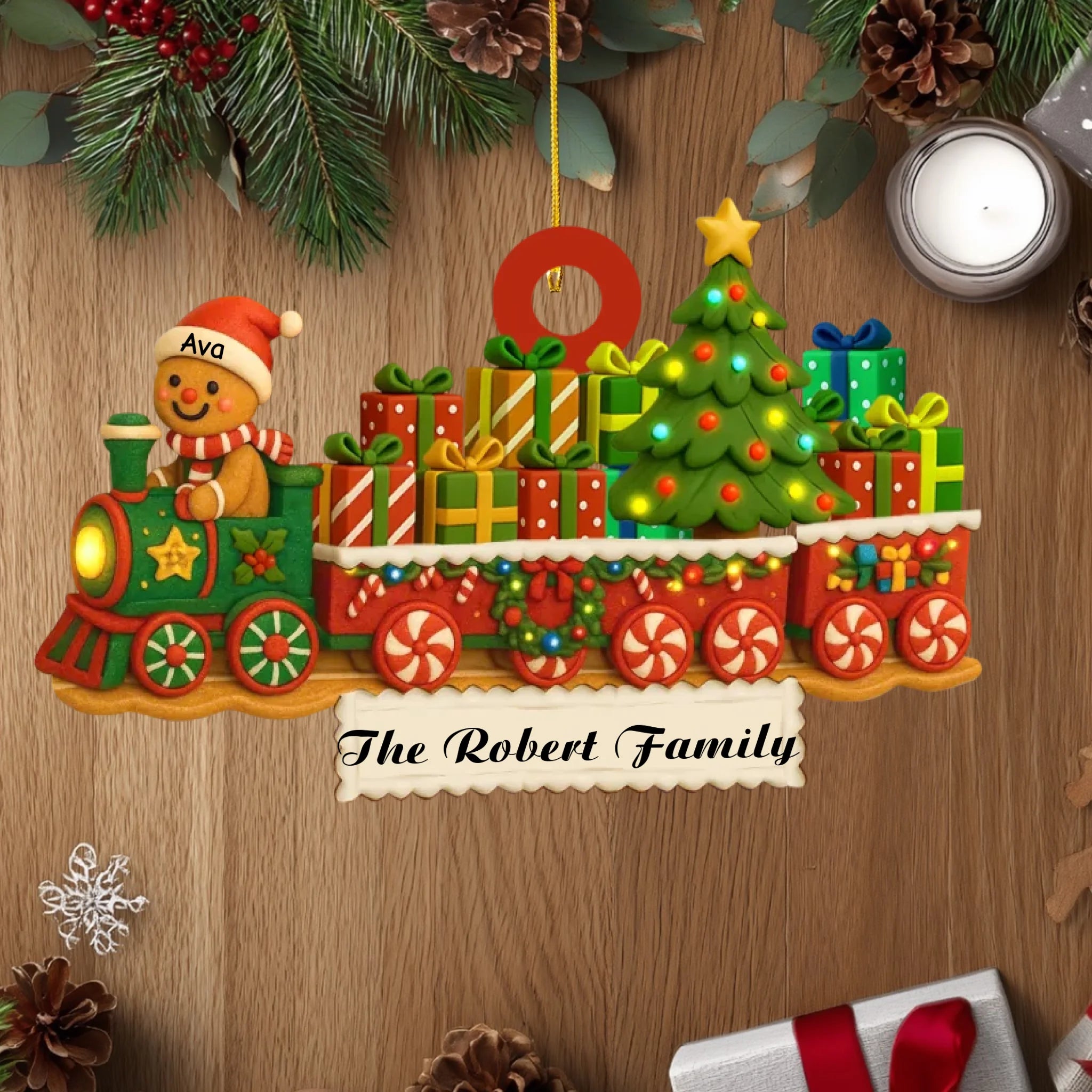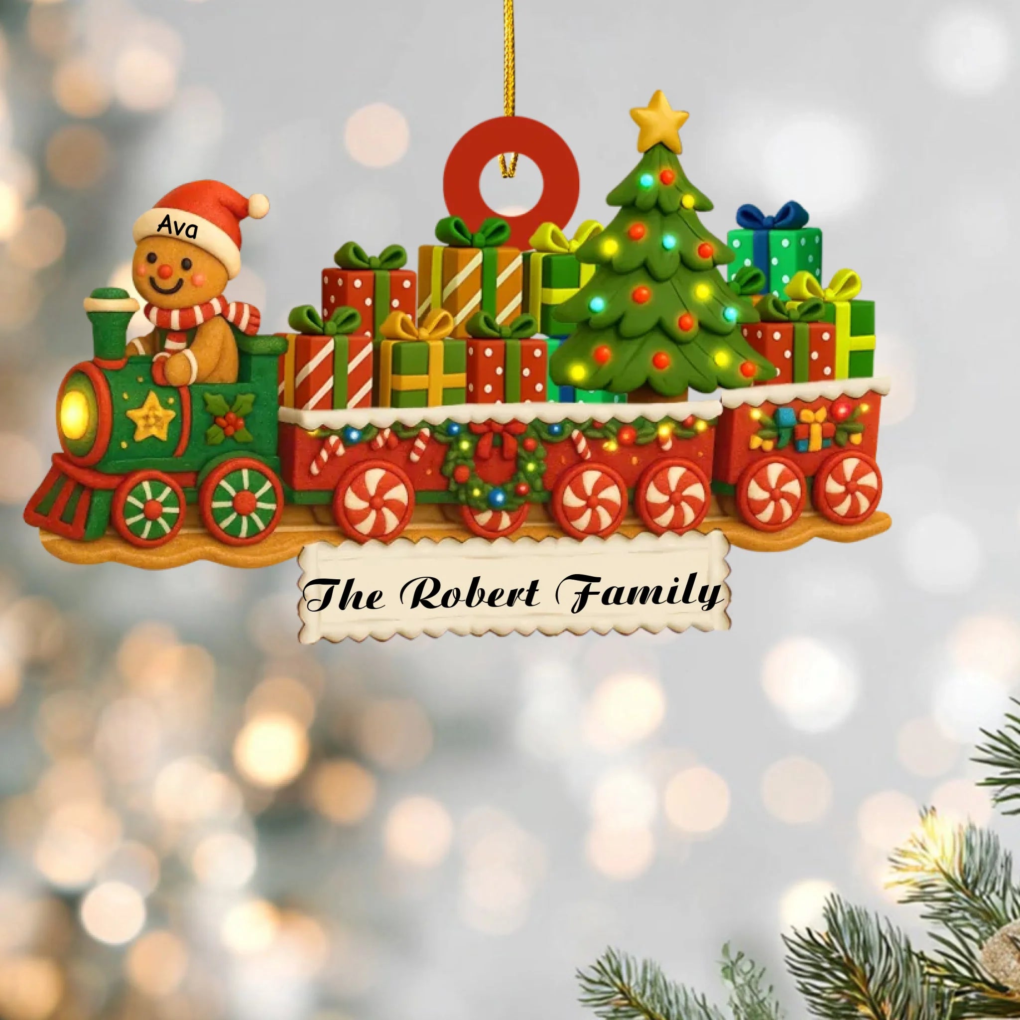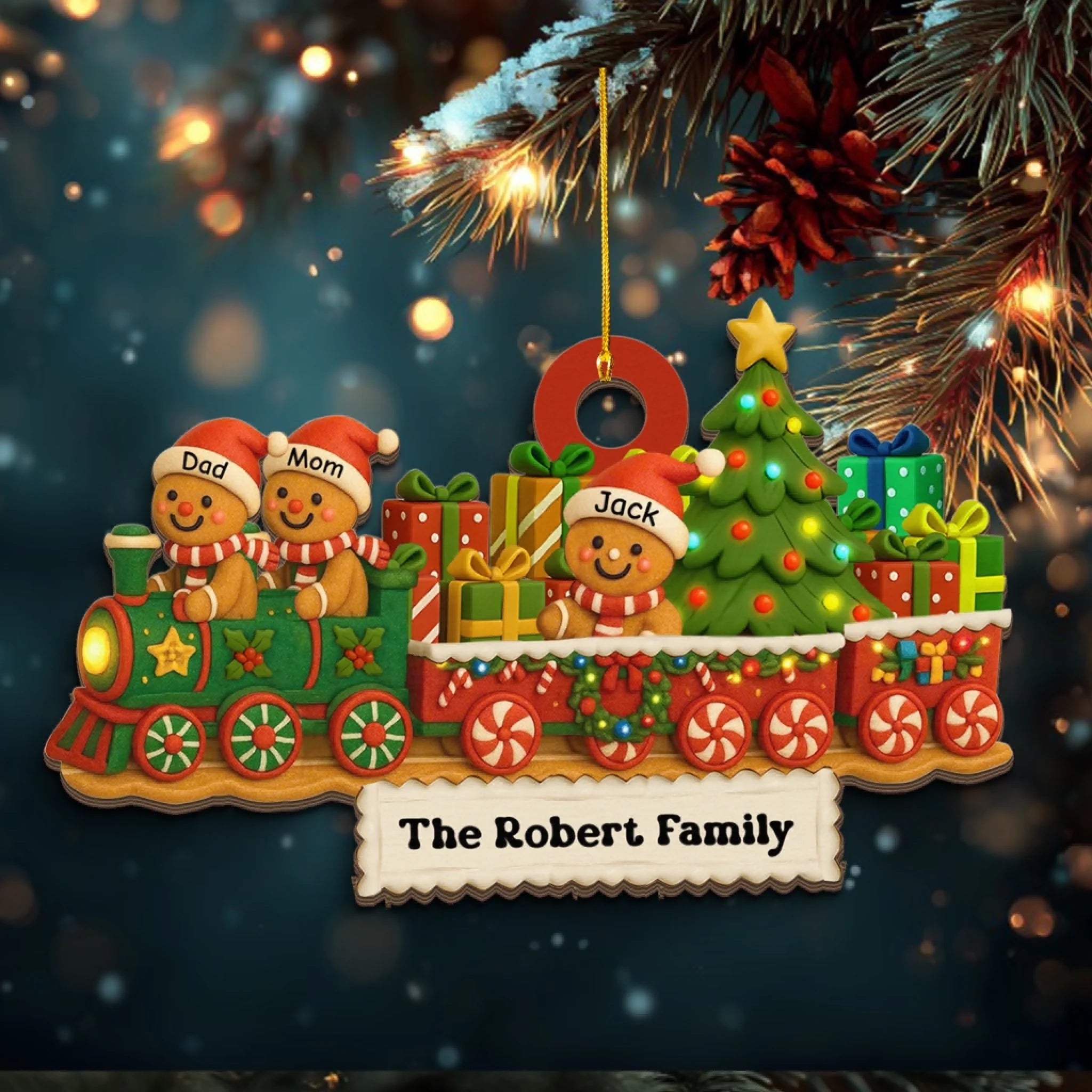 Personalized Gingerbread Family Train Ornament – Custom Wooden Christmas Decoration with Family Names, Cute Holiday Keepsake Gift