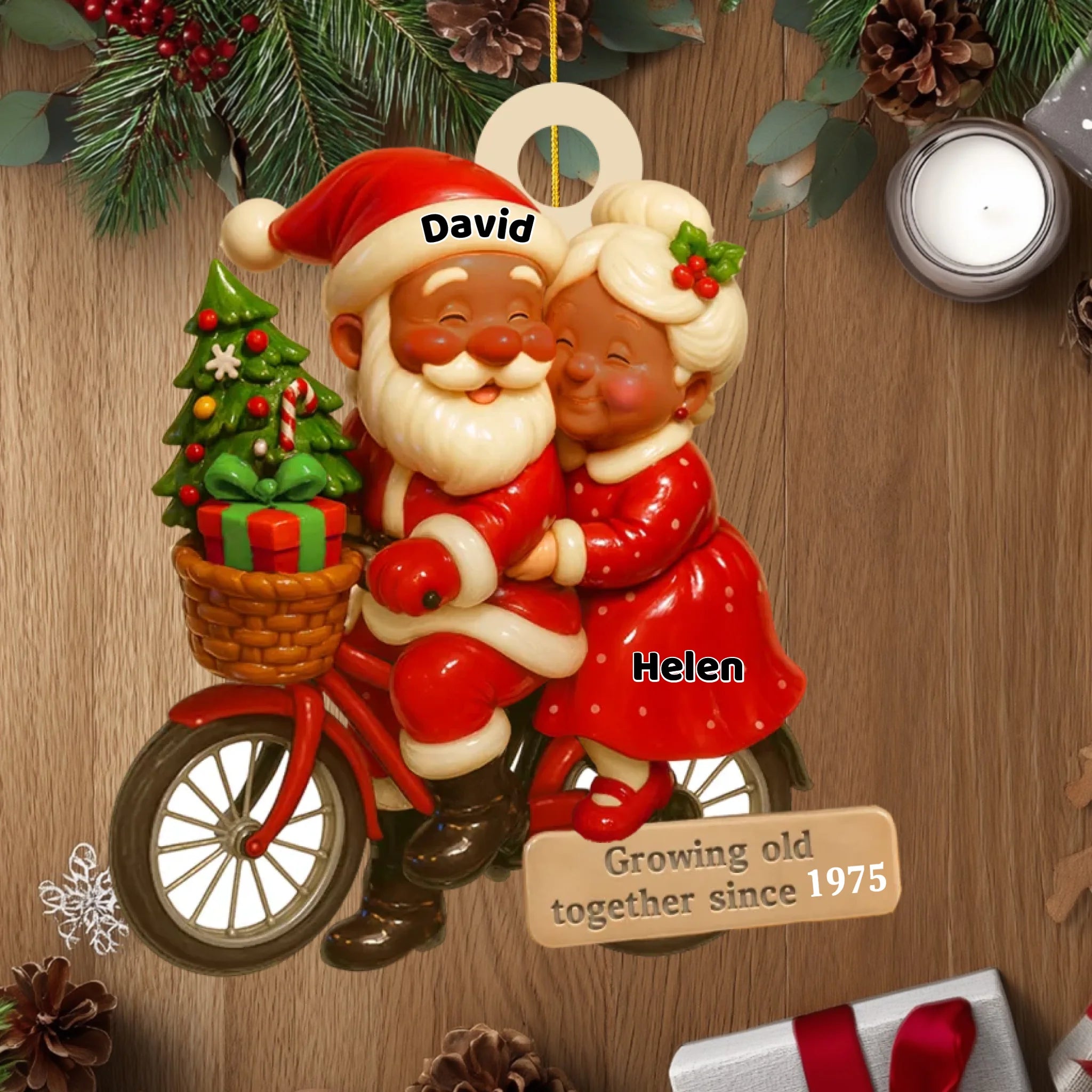 Personalized Couple Christmas Ornament – Growing Old Together Since [Year], Custom Santa & Mrs. Claus Wooden Decoration for Anniversary, Husband & Wife Gift