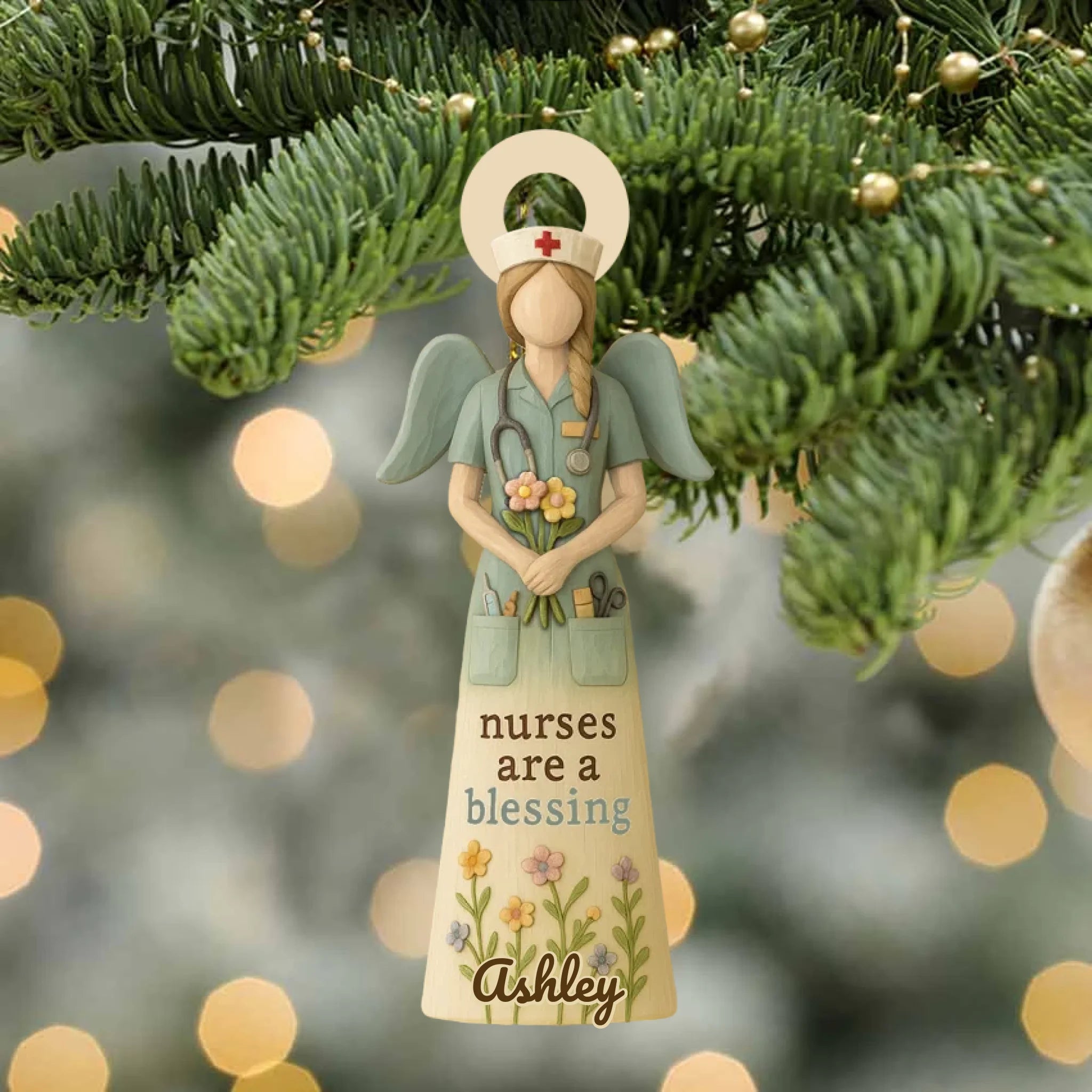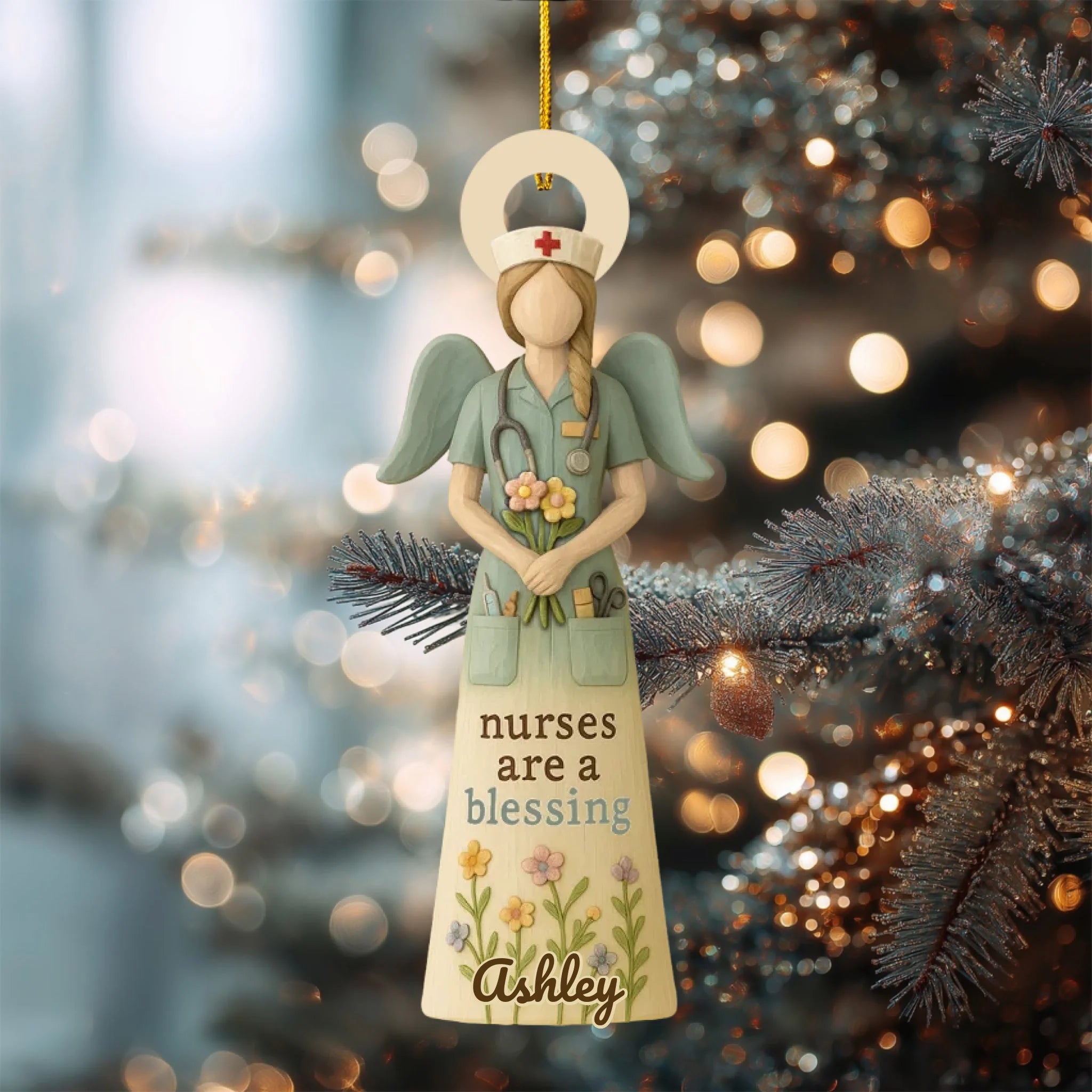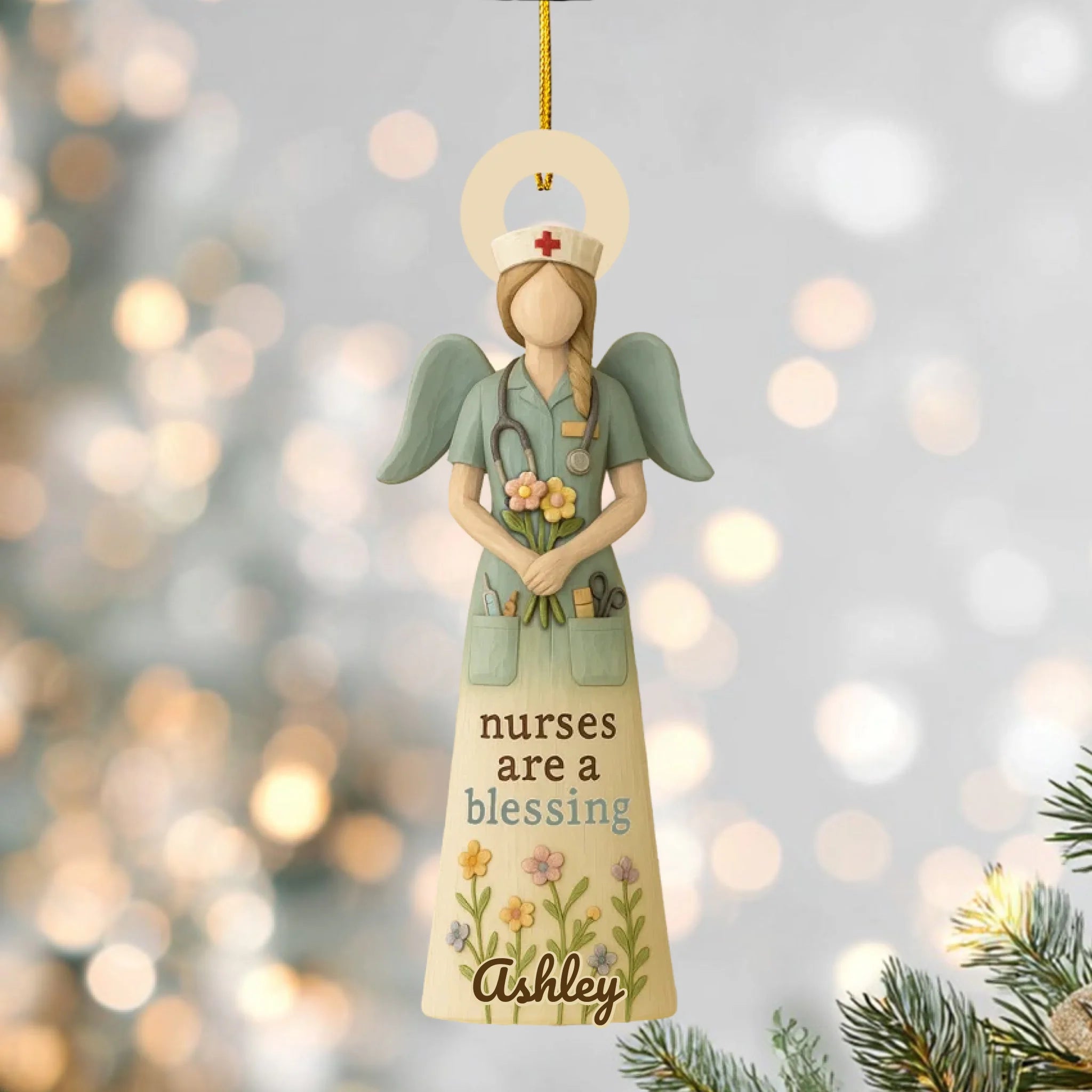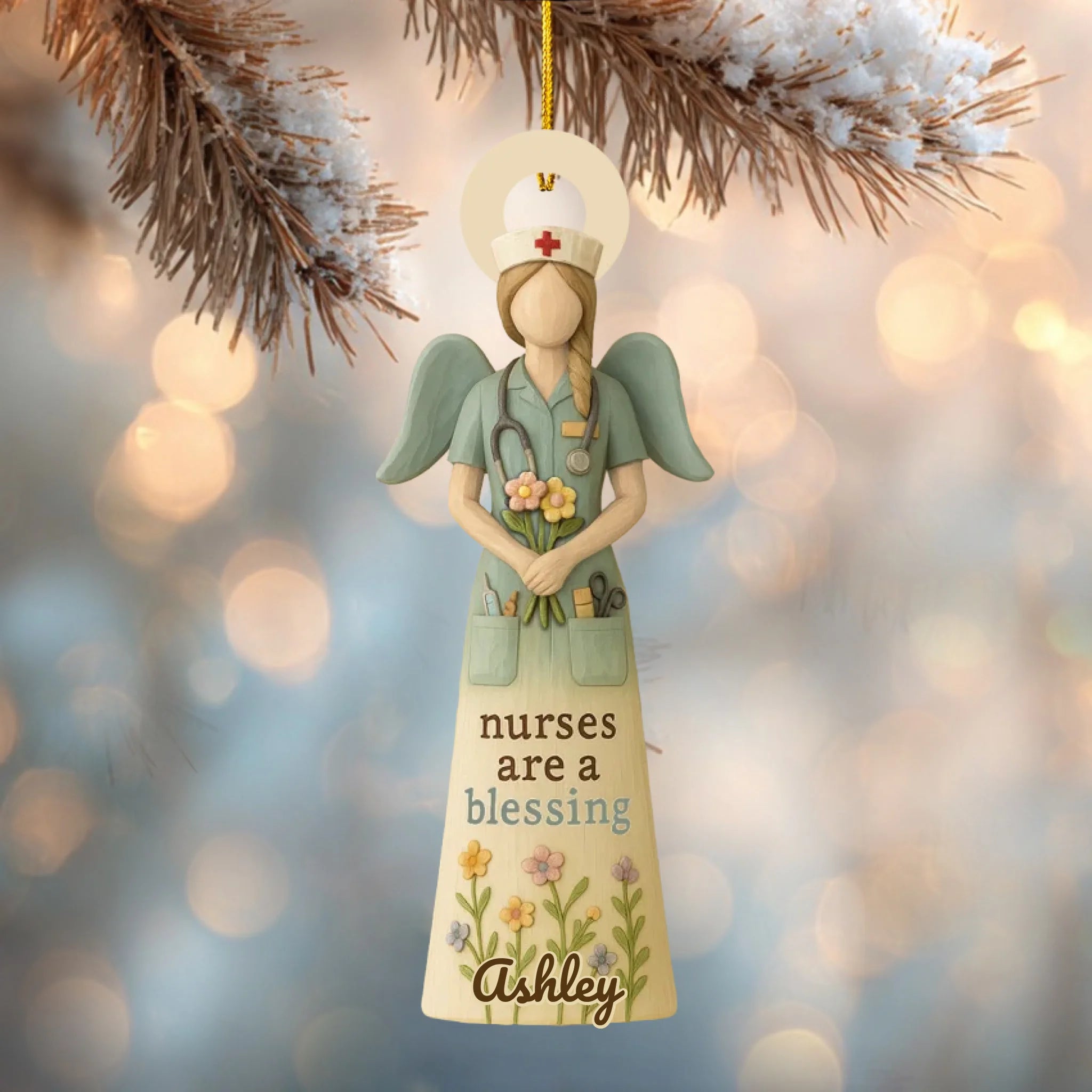 Personalized “Nurses Are a Blessing” Wooden Ornament – Custom Name & Skin Tone