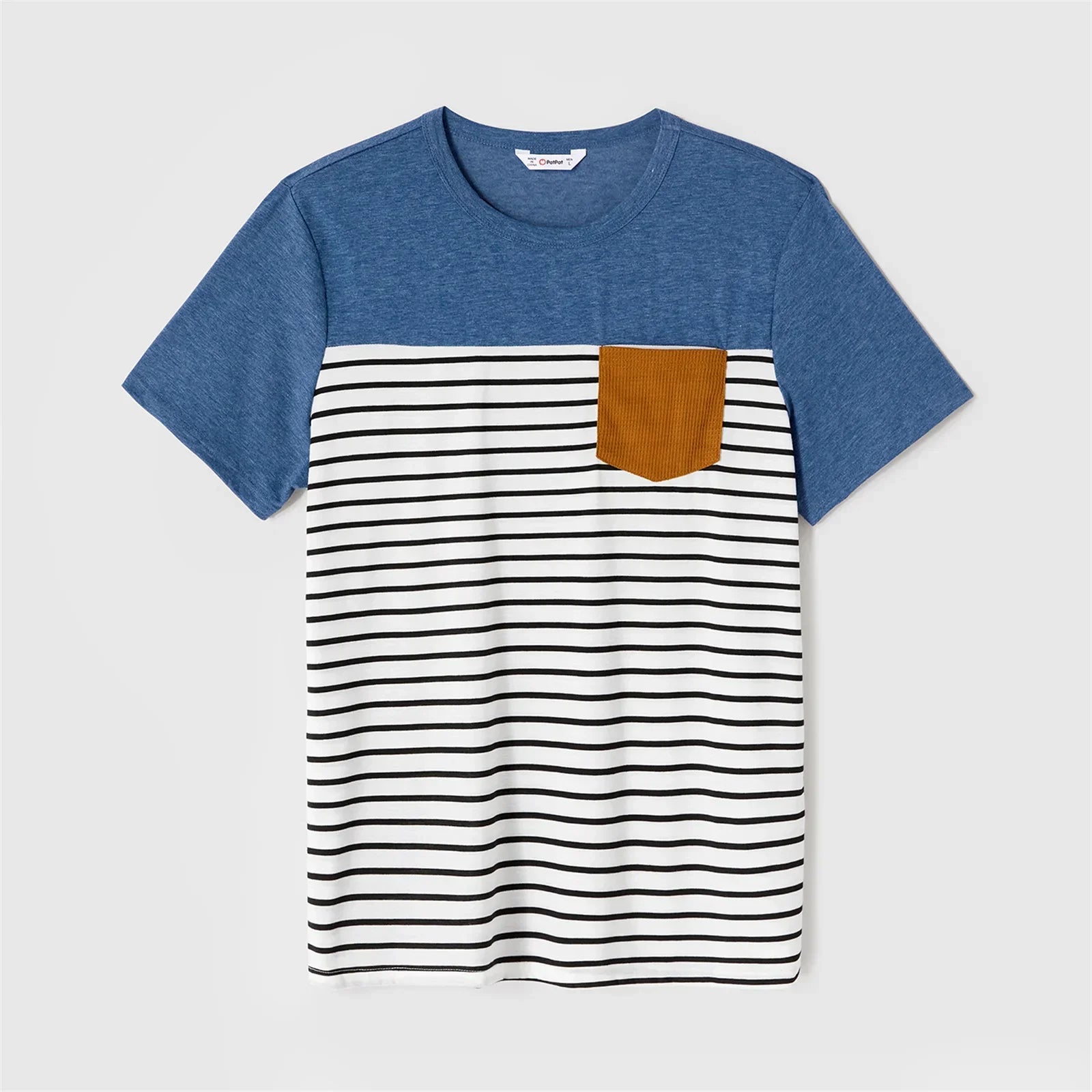 Introducing our latest collection of matching outfits for the whole family! These sets feature stylish blue belted dresses for moms and daughters, paired with short-sleeve striped t-shirts for dads and sons. Perfect for those casual family occasions during the summer, these matching outfits offer a fun and fashionable look for the entire family.