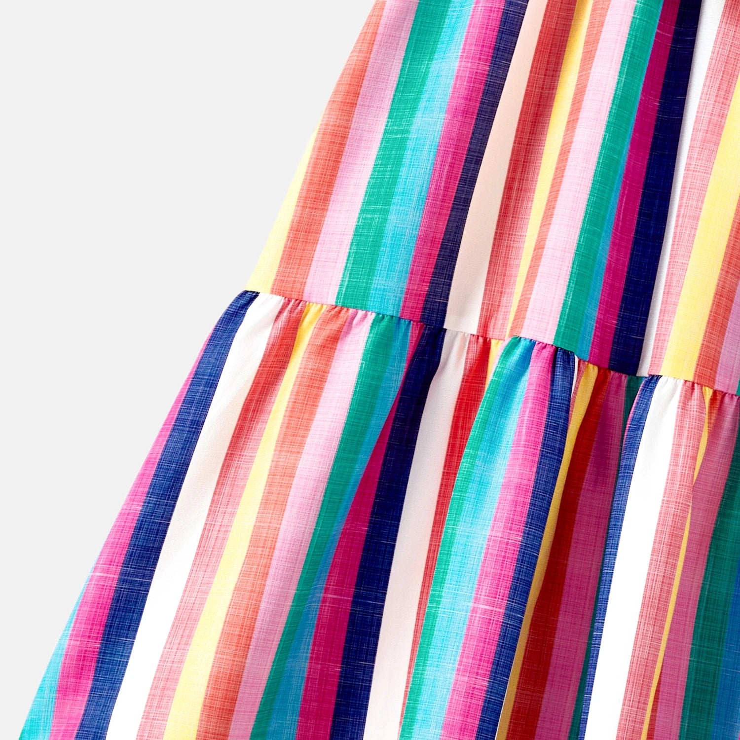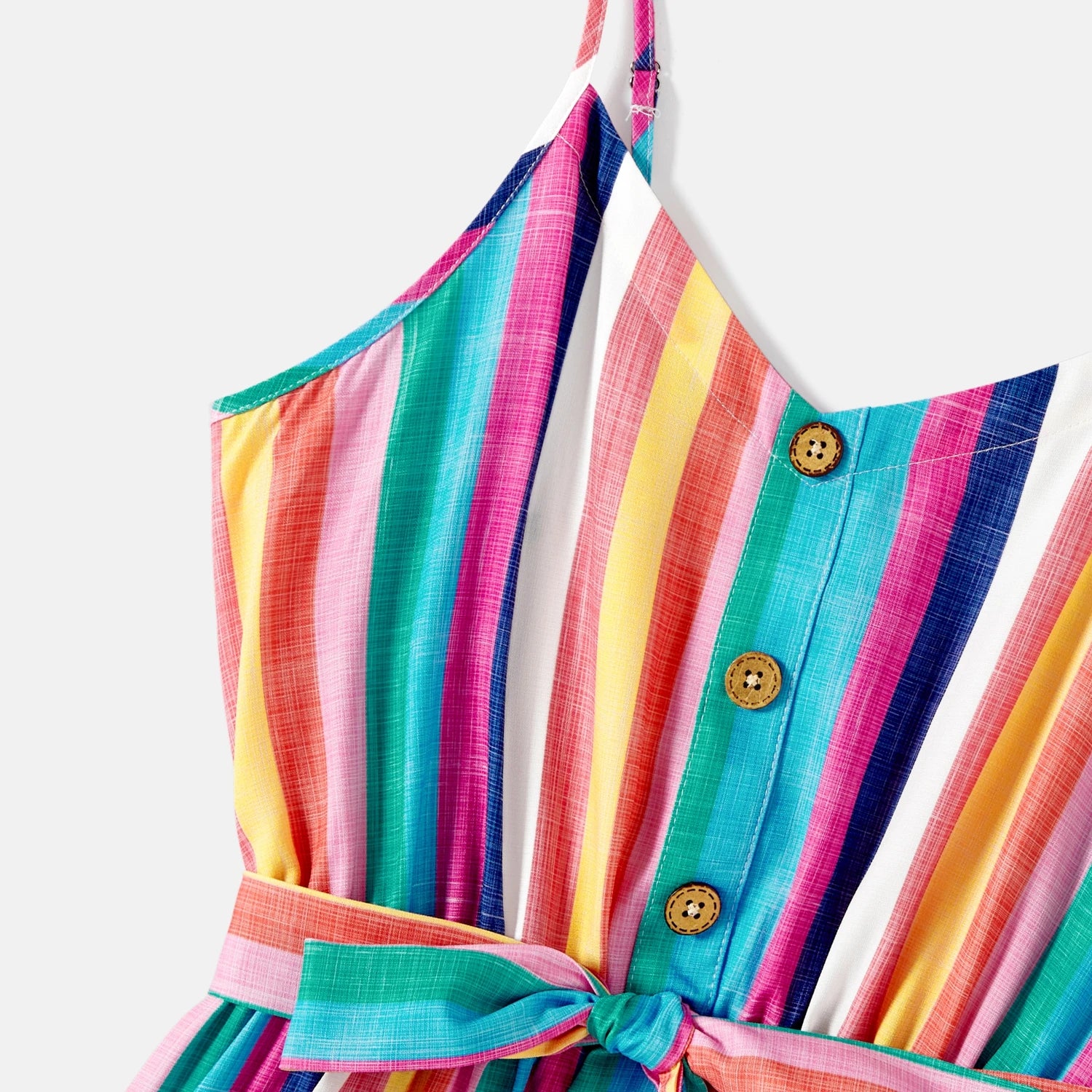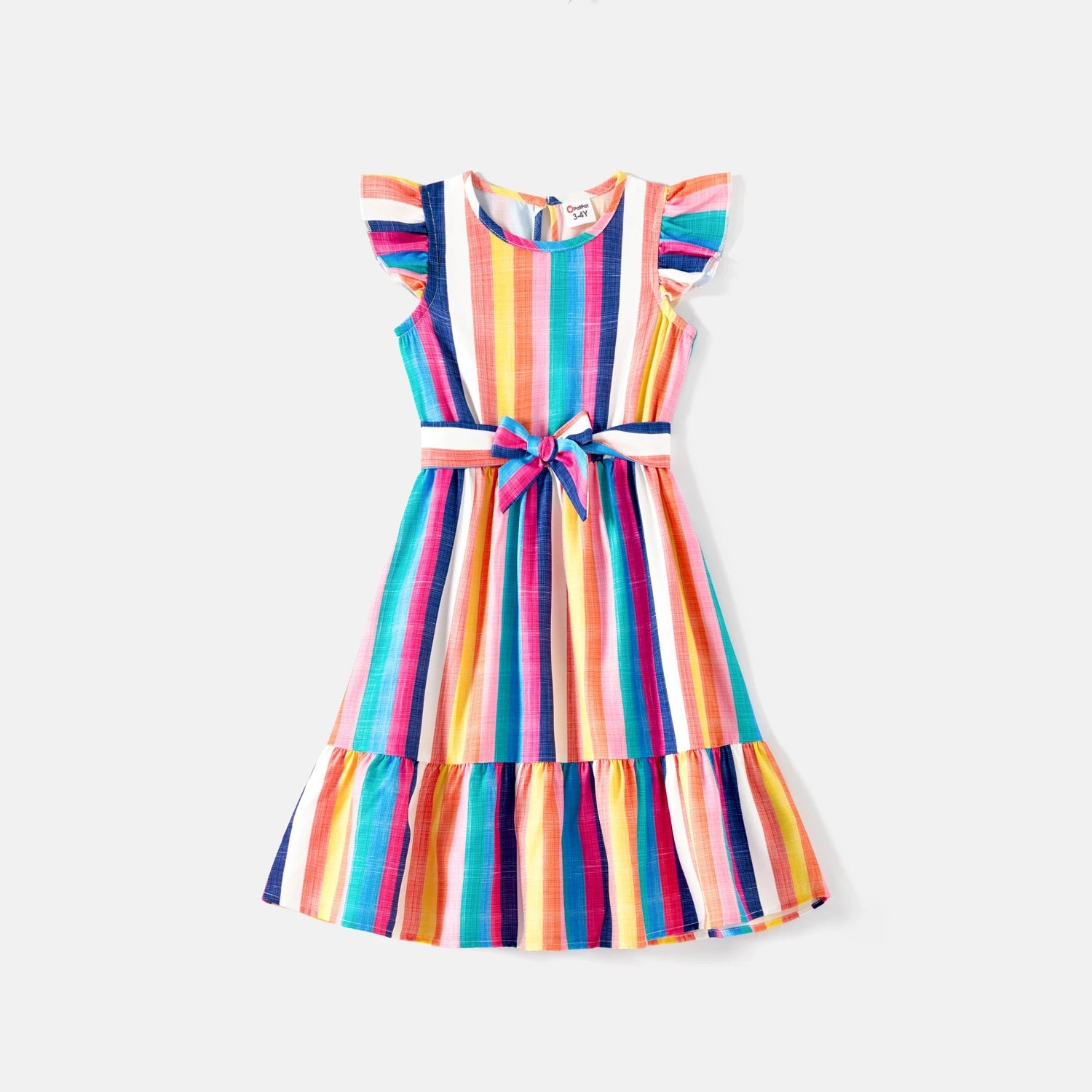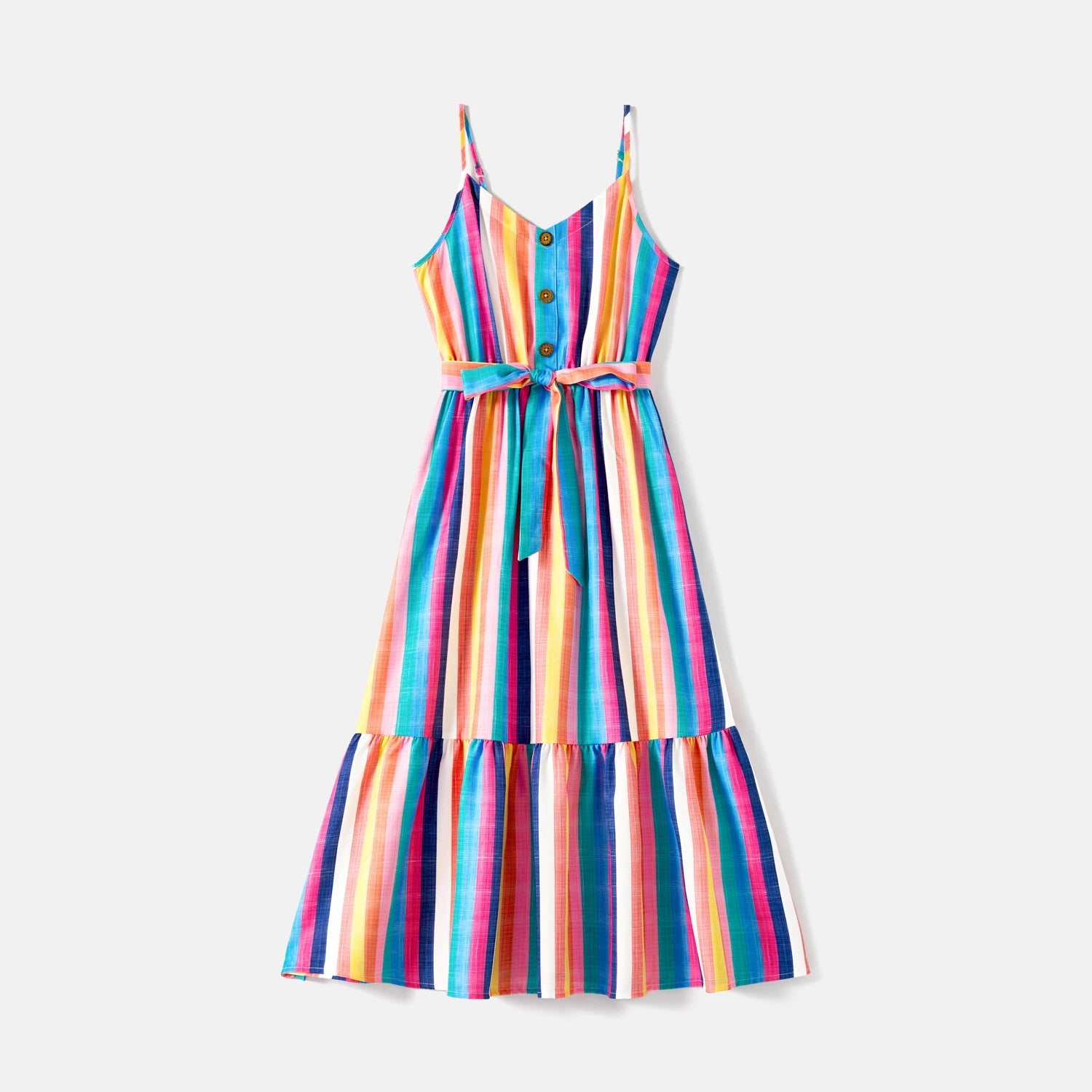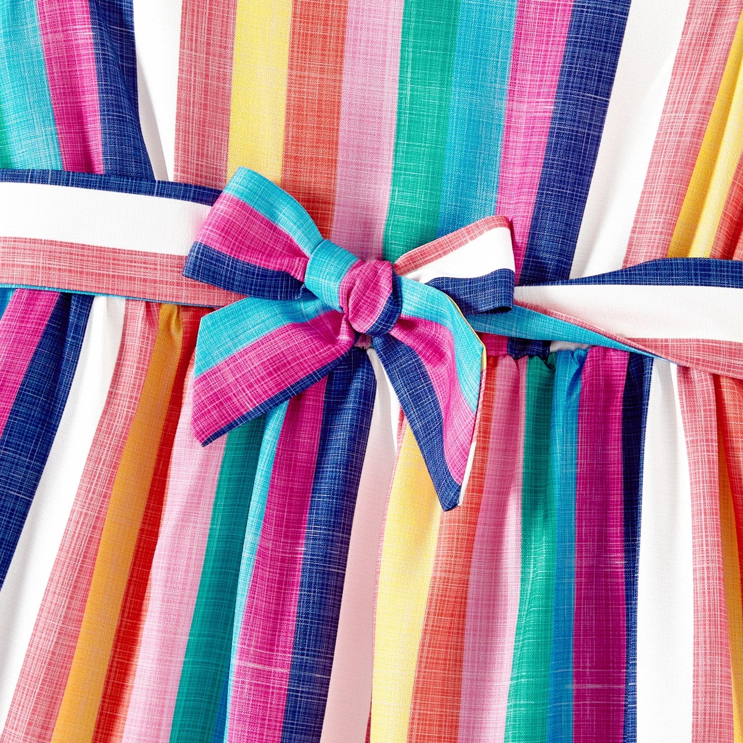 Colorful Striped Sleeveless Belted Dresses for Mommy and Daughter