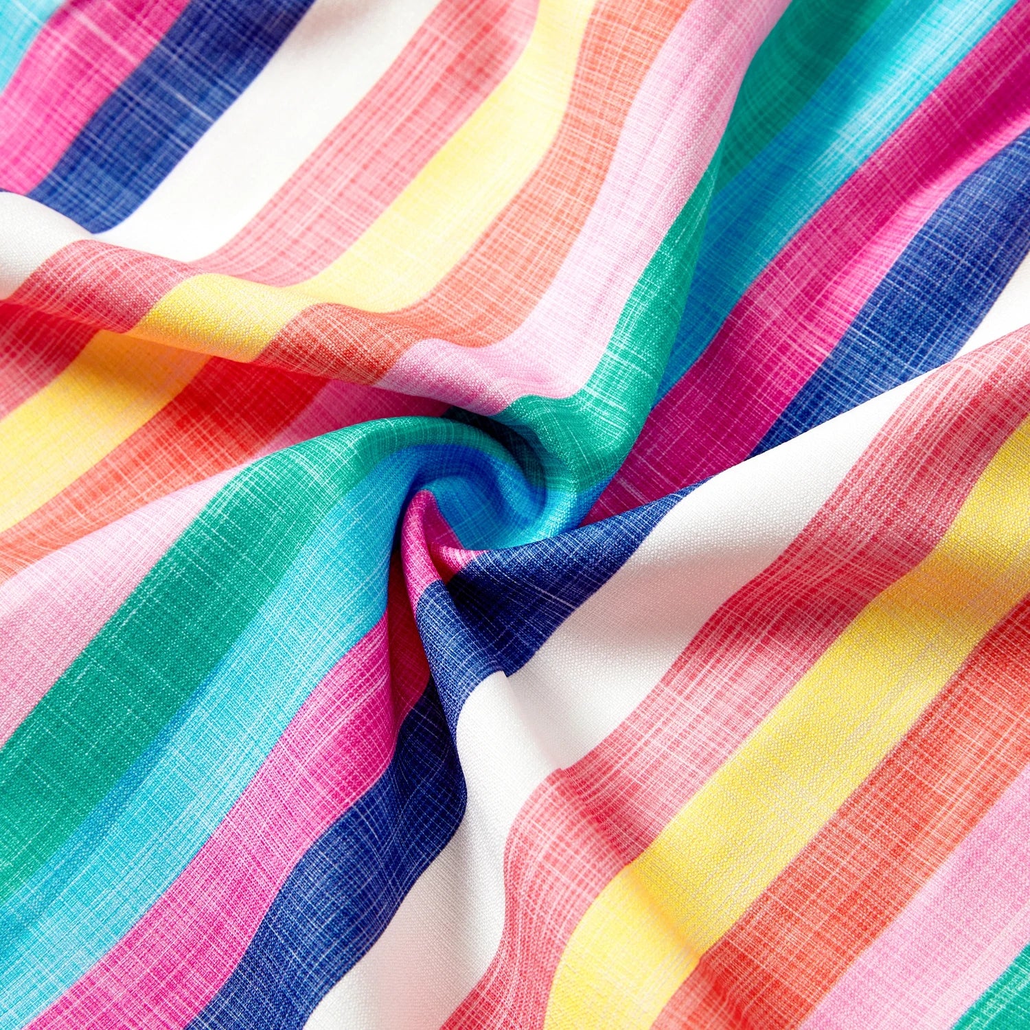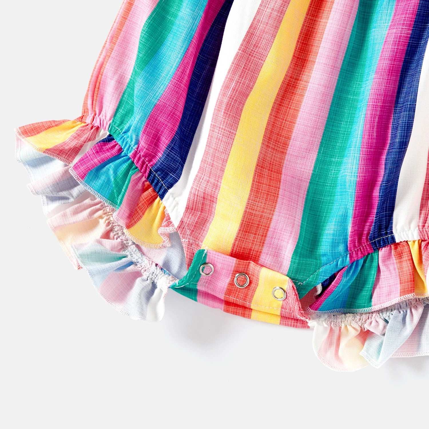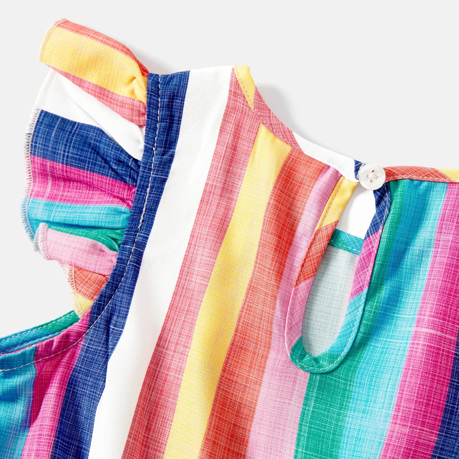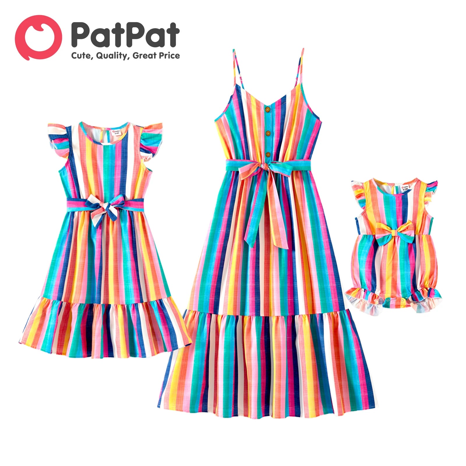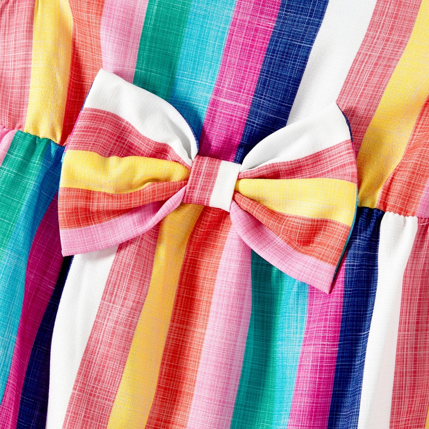 Colorful Striped Sleeveless Belted Dresses for Mommy and Daughter