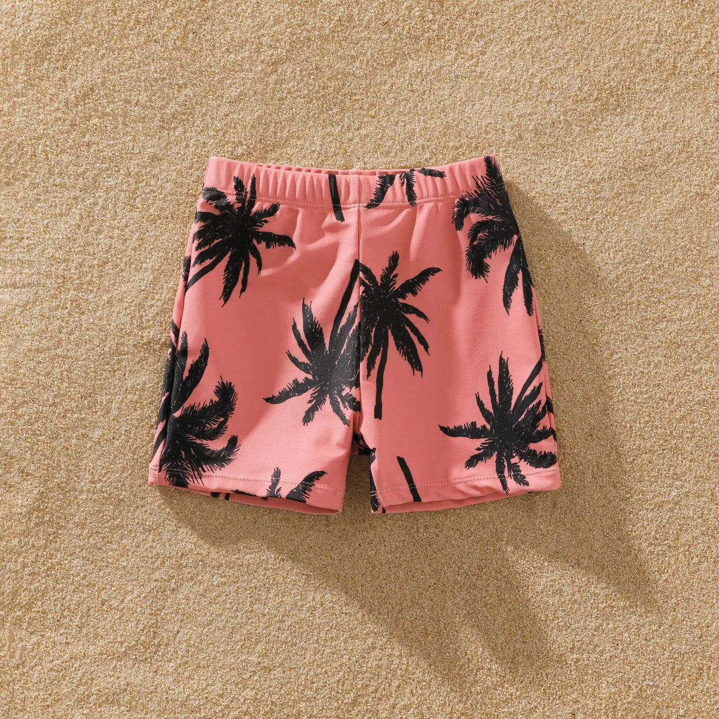 Introducing our vibrant and stylish family matching swimsuit set adorned with an all-over coconut tree print! Get ready to make a statement on the beach or by the pool with this eye-catching ensemble. Crafted from high-quality polyester, our swimwear set ensures both durability and comfort, perfect for enjoying the summer sun.