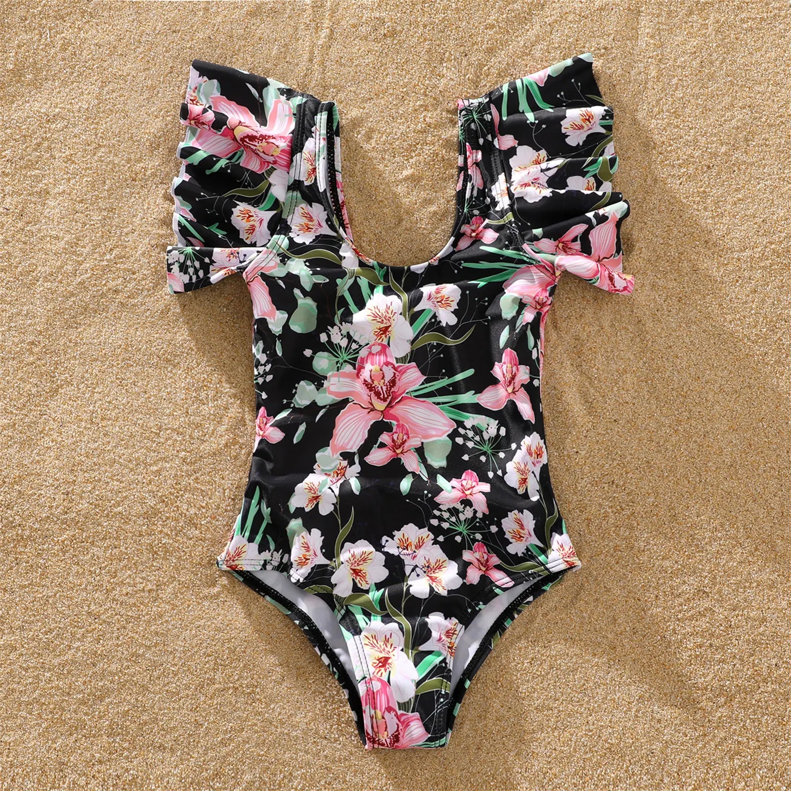 Versatile Use: Suitable for summer adventures, beach days, and family outings, our Family Matching Floral Swim Trunks and Ruffle-Sleeve Swimsuit are the perfect companions for your next warm-weather escapade.