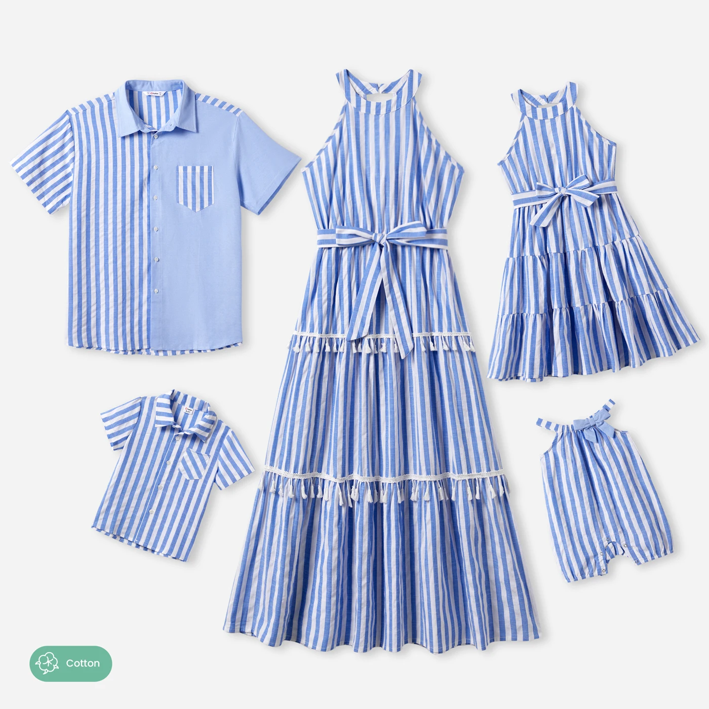 Product Introduction: Elevate your family's style with these chic blue striped matching outfits, perfect for any occasion. Crafted from high-quality polyester, these sets ensure comfort and style for the entire family.