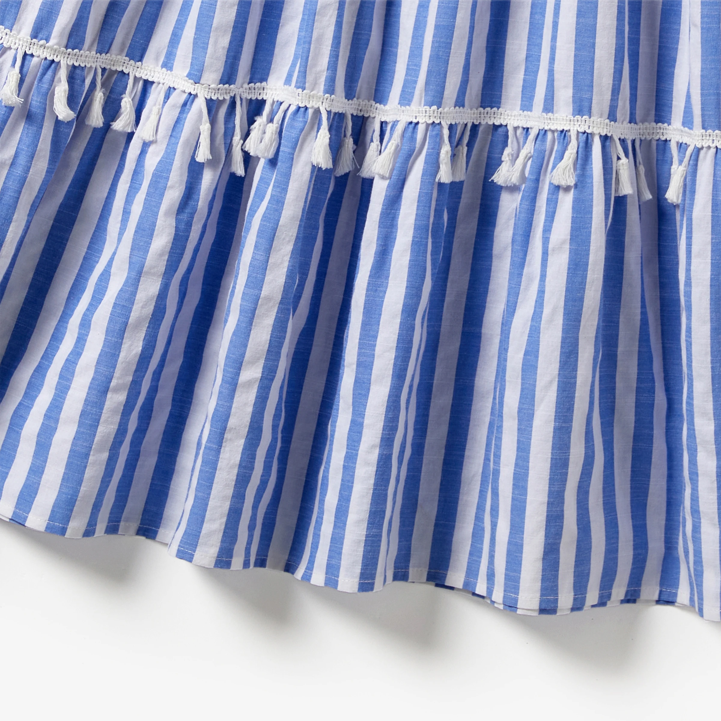 Family Matching Stripe Shirt and Tassel Trim Dress Sets