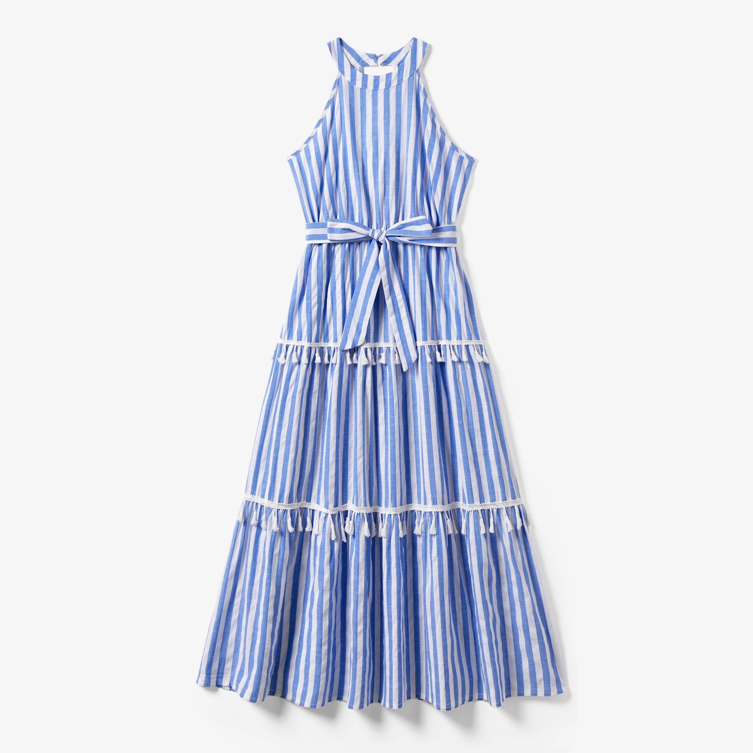 - The dress is crafted with an adjustable waist, featuring a built-in elastic and free waistband for a customized fit.
