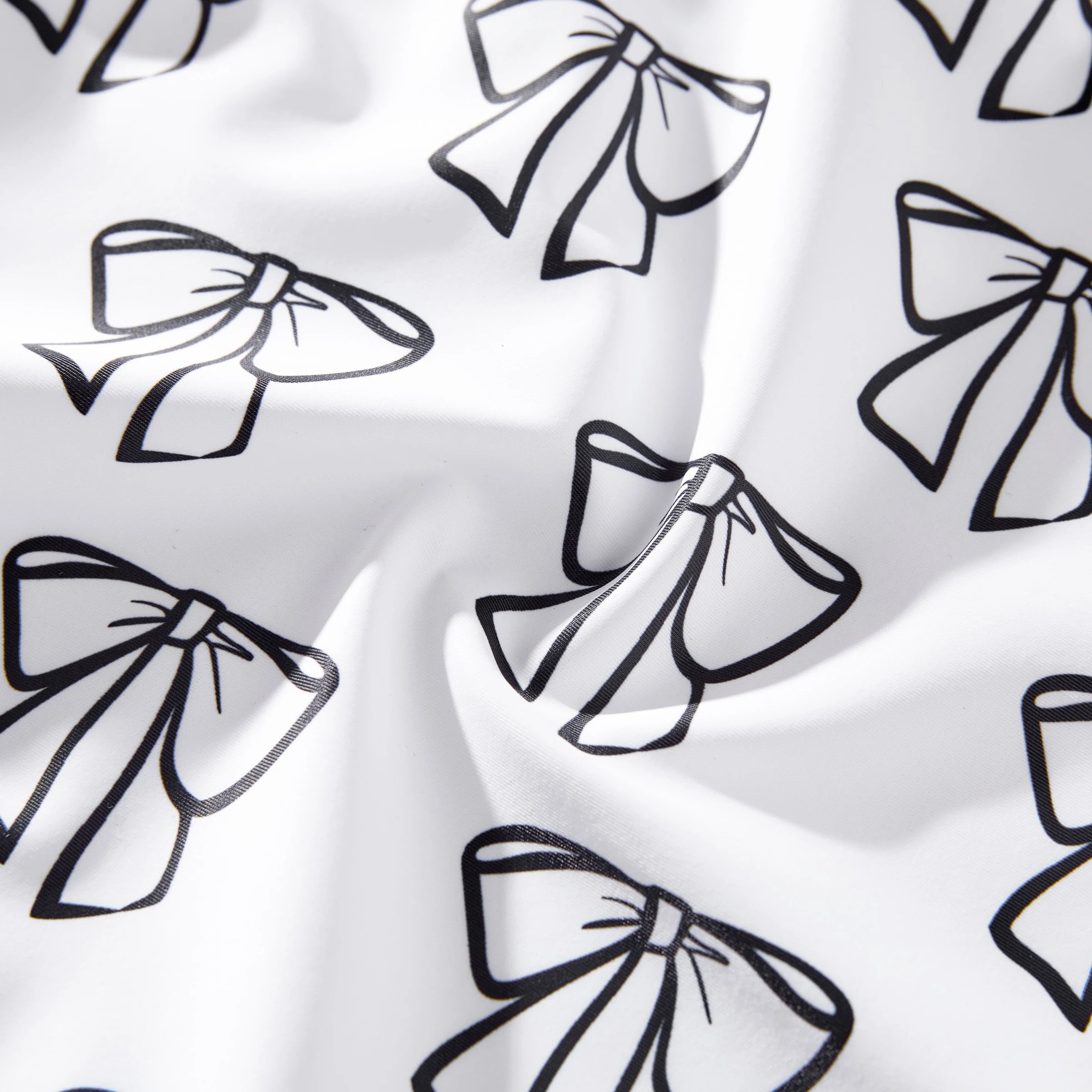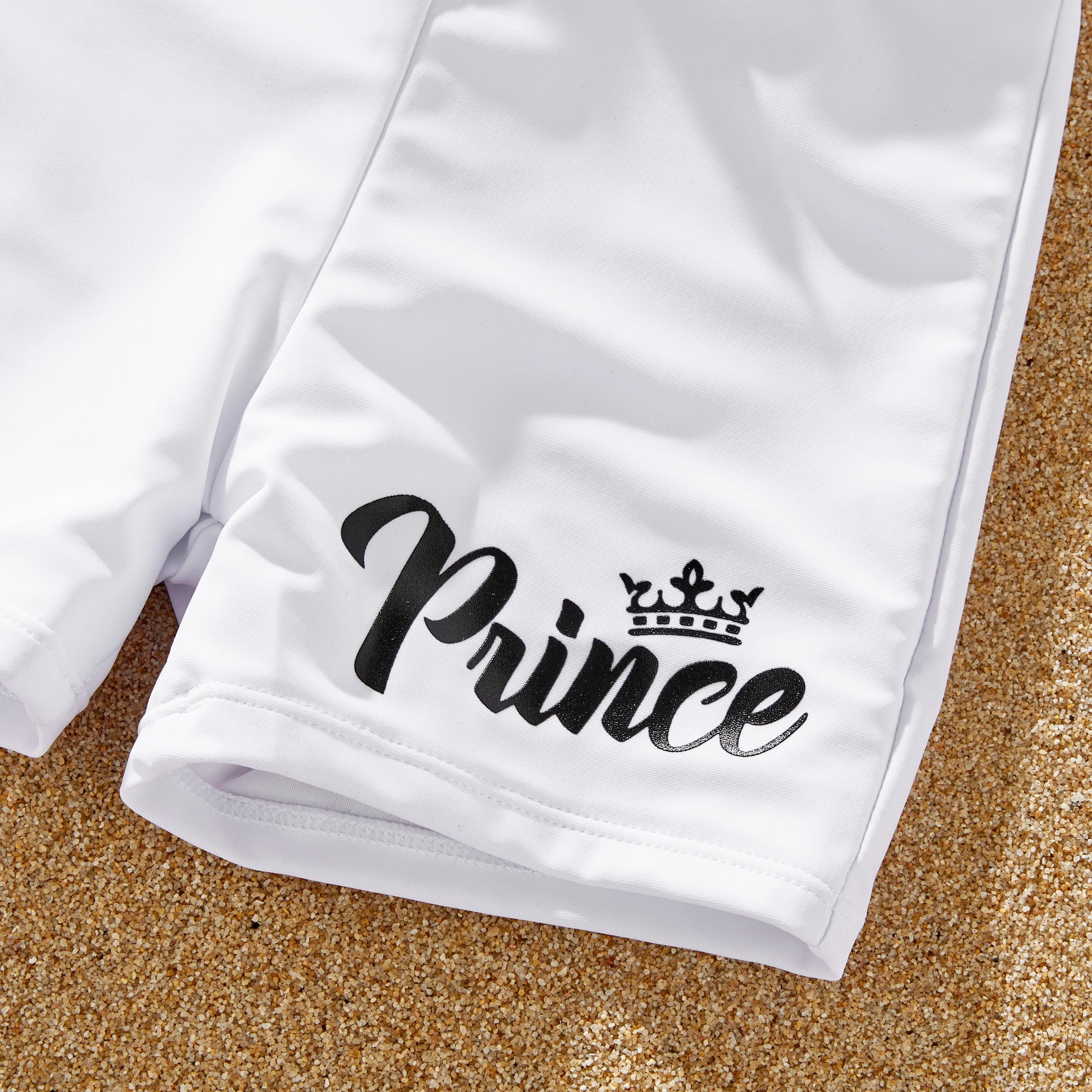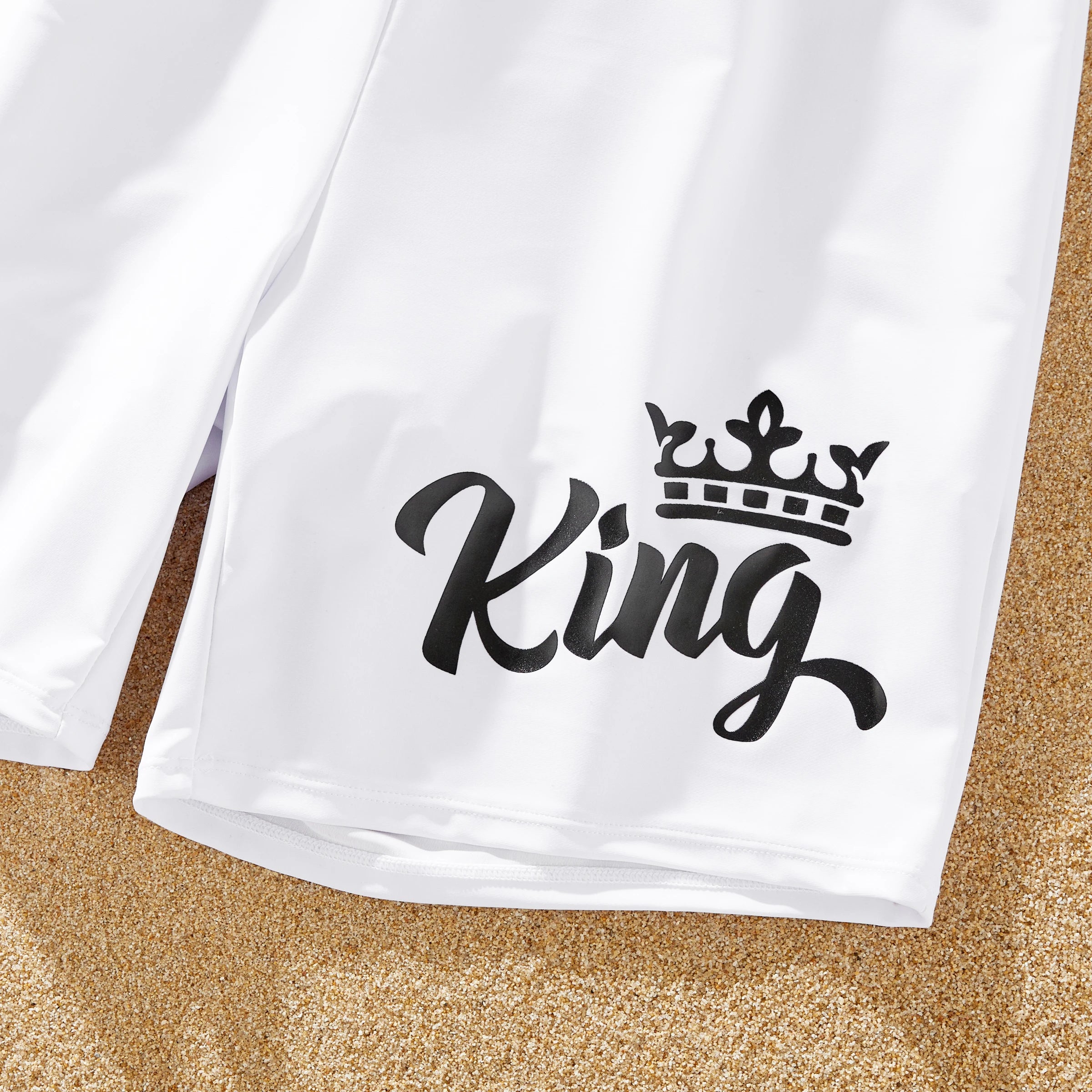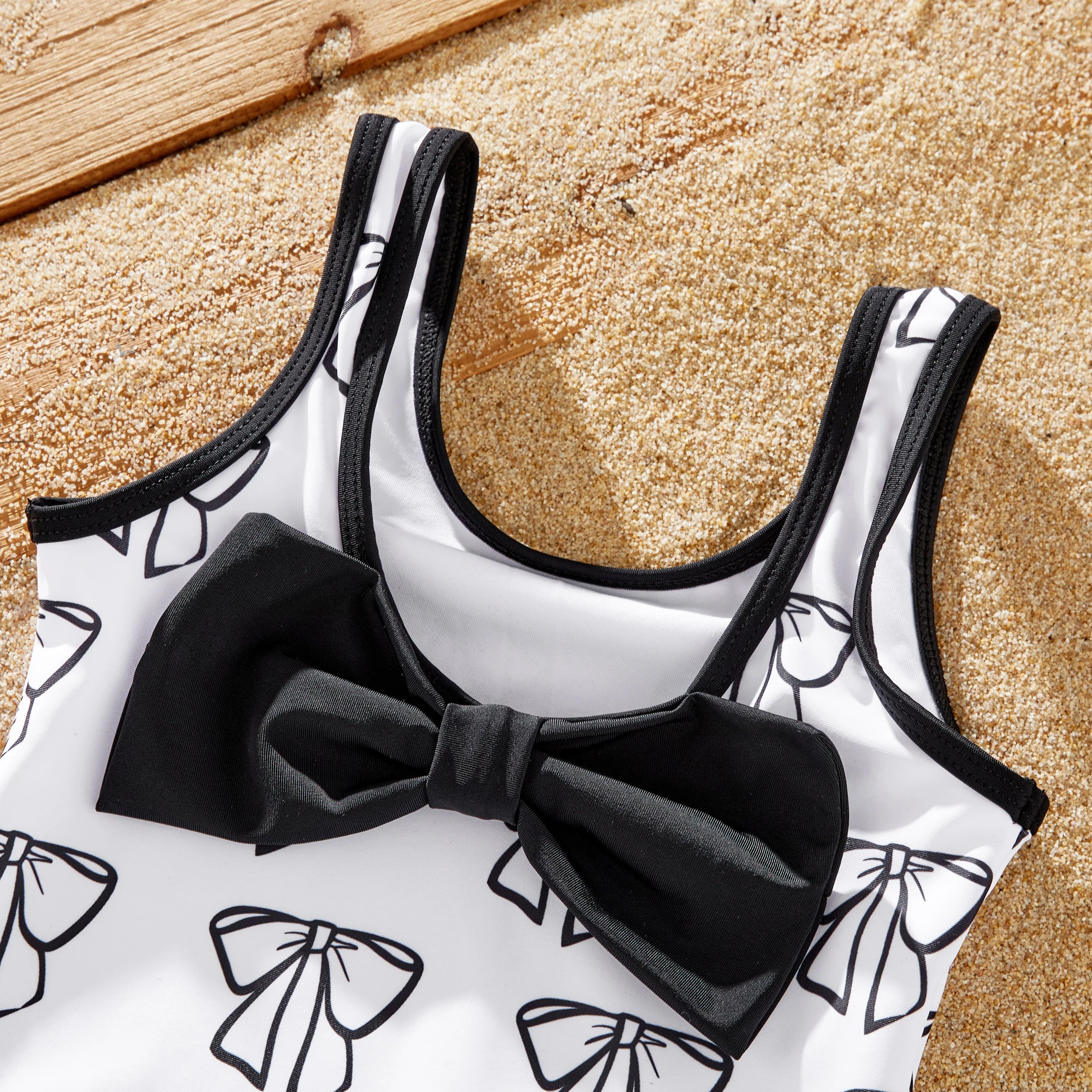 Product Introduction: Elevate your family's summer style with our exquisite Letter Printed Drawstring Swim Trunks & Bow Pattern Swimsuit Set. Immerse yourselves in the epitome of elegance as you indulge in this beautiful white one-piece swimsuit adorned with a charming bow design. Ideal for outdoor activities, vacations, and parties, this set ensures your family stands out with sophistication.