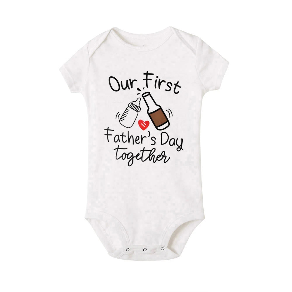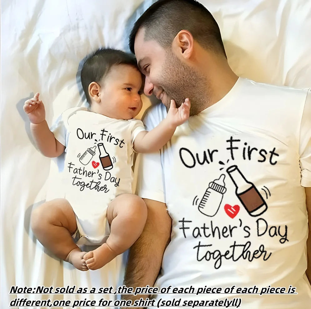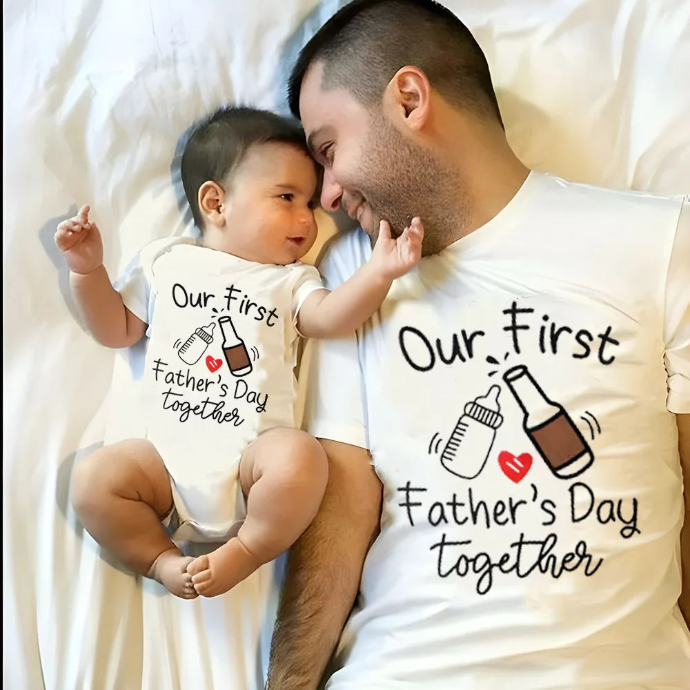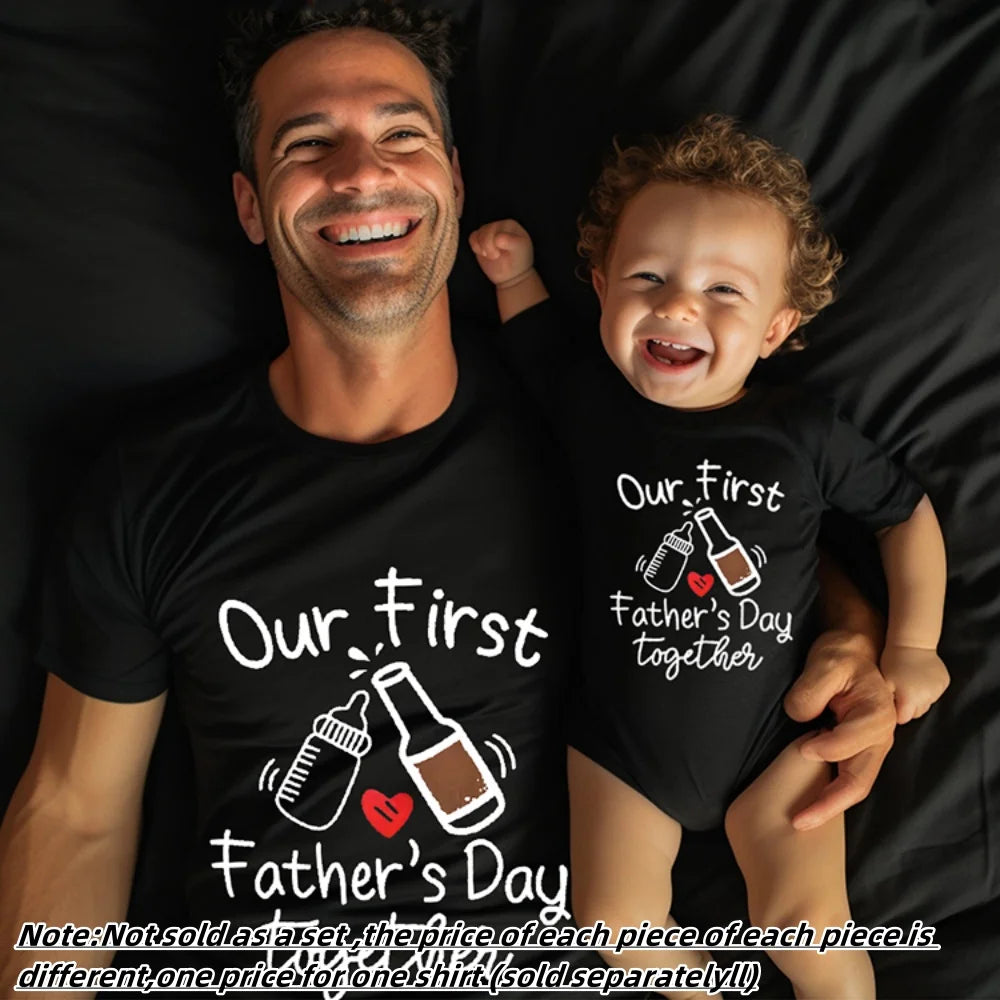 Mark this special milestone with our Our First Father's Day Together Matching Outfits. These matching outfits are crafted from high-quality polyester, ensuring they are soft, breathable, and perfect for summer wear. The set includes a baby romper and a dad t-shirt, both featuring a charming and meaningful print that celebrates your first Father's Day together. Whether you're heading out for a day of fun or capturing the moment with a photoshoot, these outfits are the perfect choice for making the day memorable.