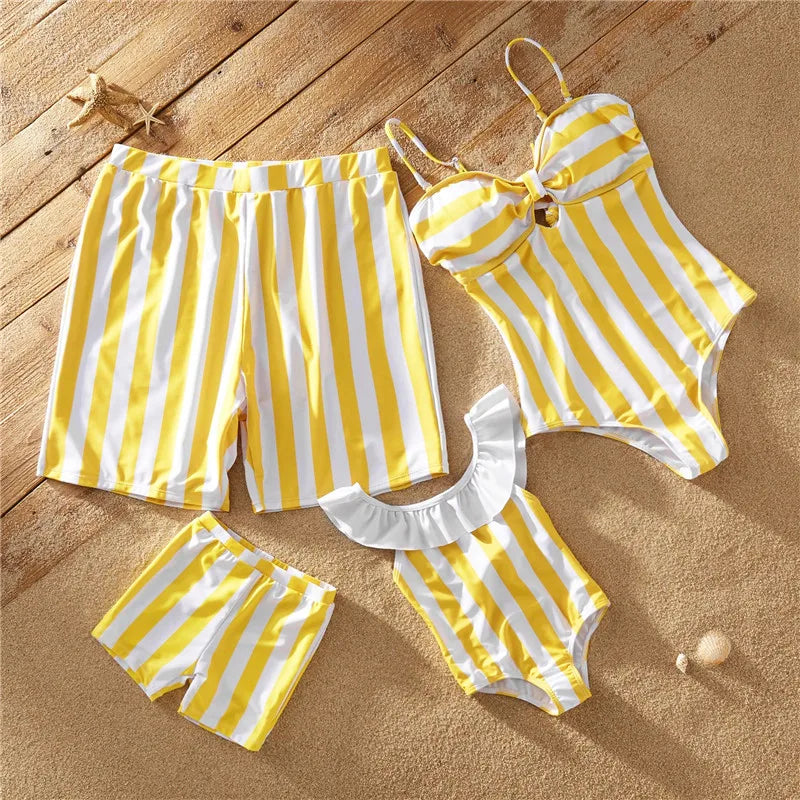 Summer Yellow Family Matching Swimsuits: Fun in the Sun for the Whole Family!