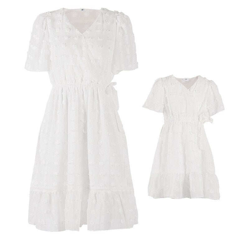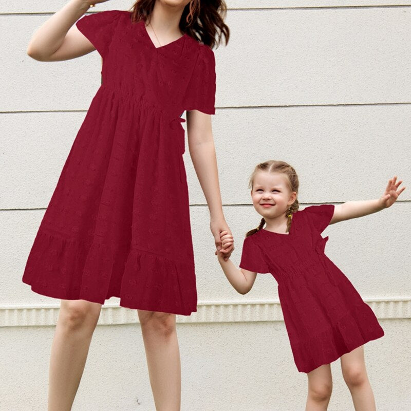 Family Matching Clothes Dress For Mother Daughter V Neck Short Sleeve