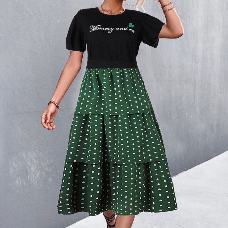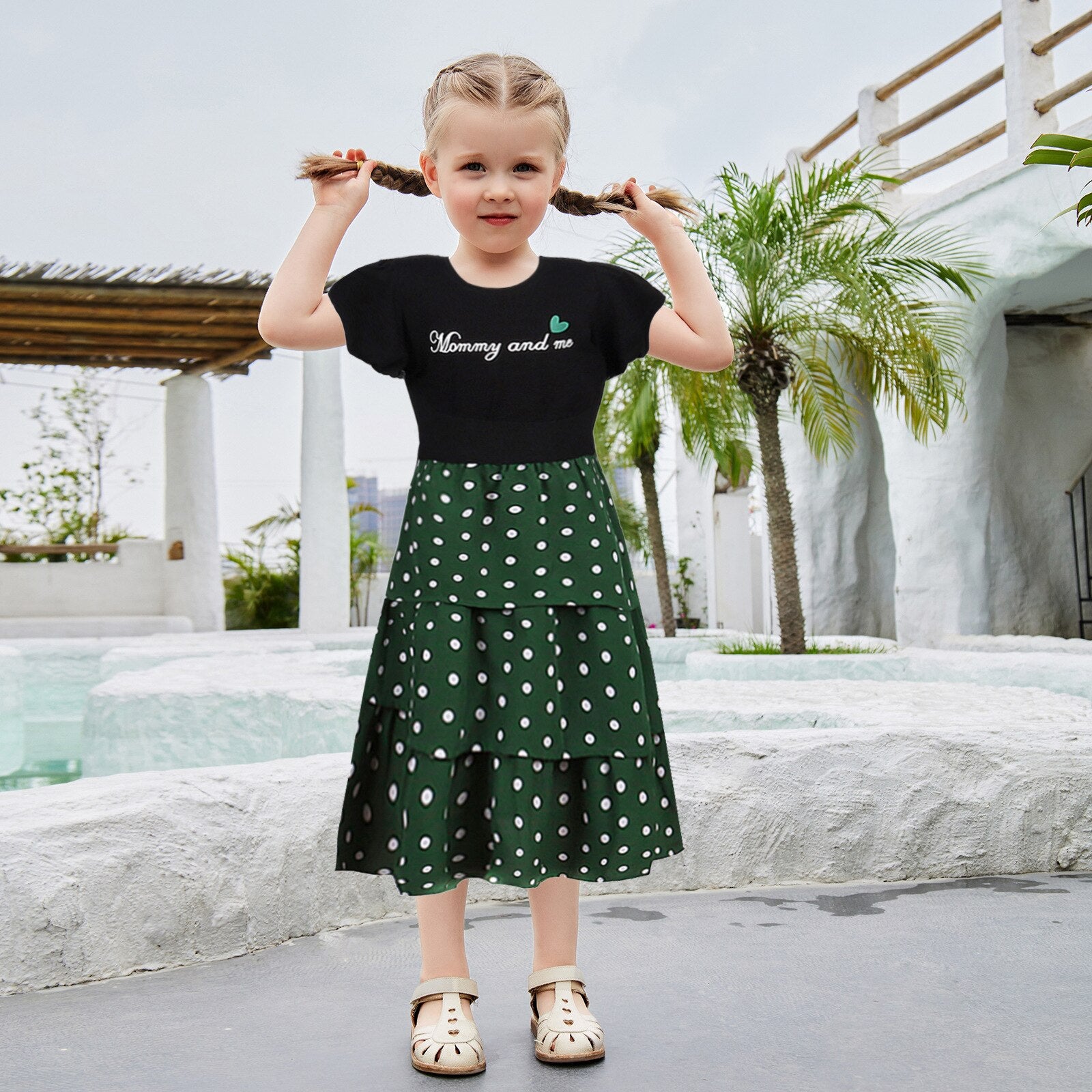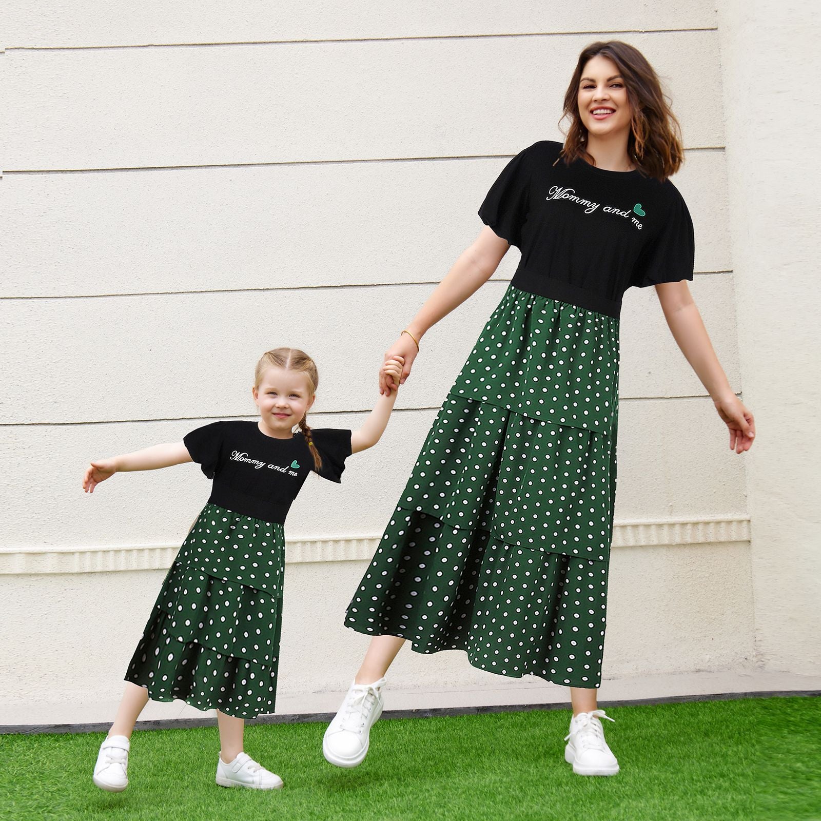 Fashion Mother Daughter Matching Outfits Letter Printed Shirt And Polka Dot Skirt