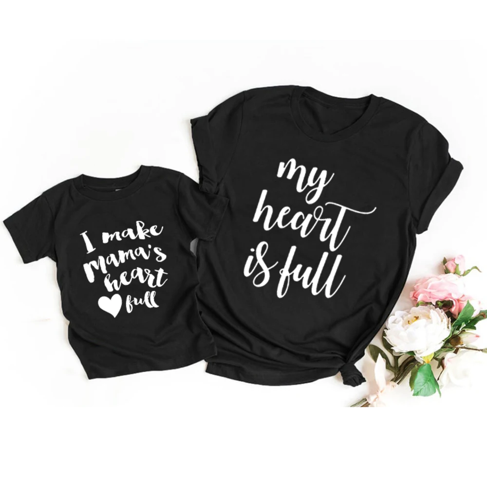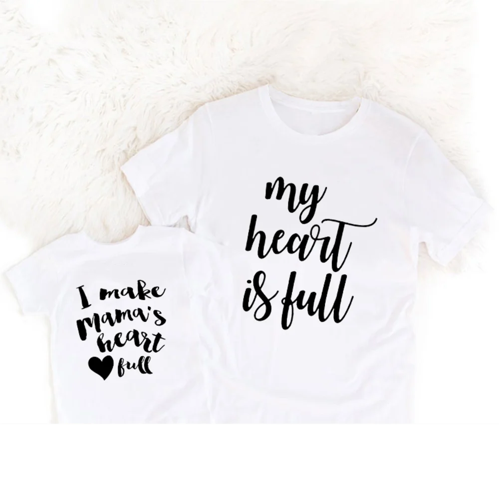 "My Heart Is Full" / "I Make Mama's Heart Full" Tee: Mommy & Kid Matching T-Shirts