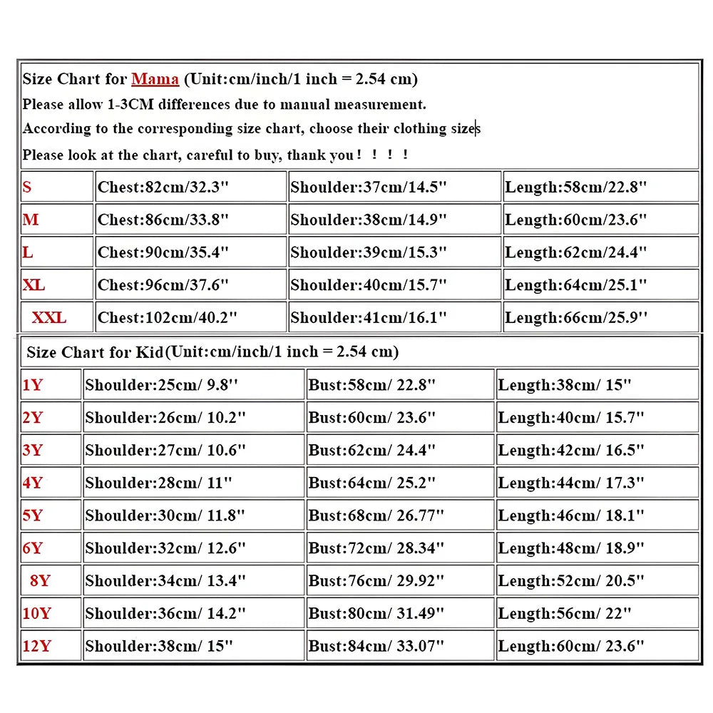 - Please refer to the size chart carefully to select the appropriate size for both Mom and Kid.