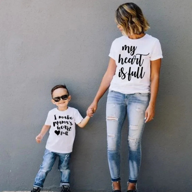 My Heart Is Full / I Make Mama's Heart Full Tee: Mommy & Kid Matching T-Shirts