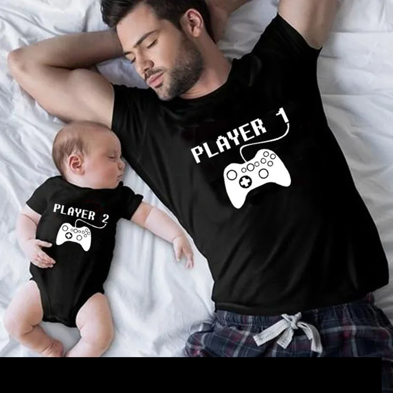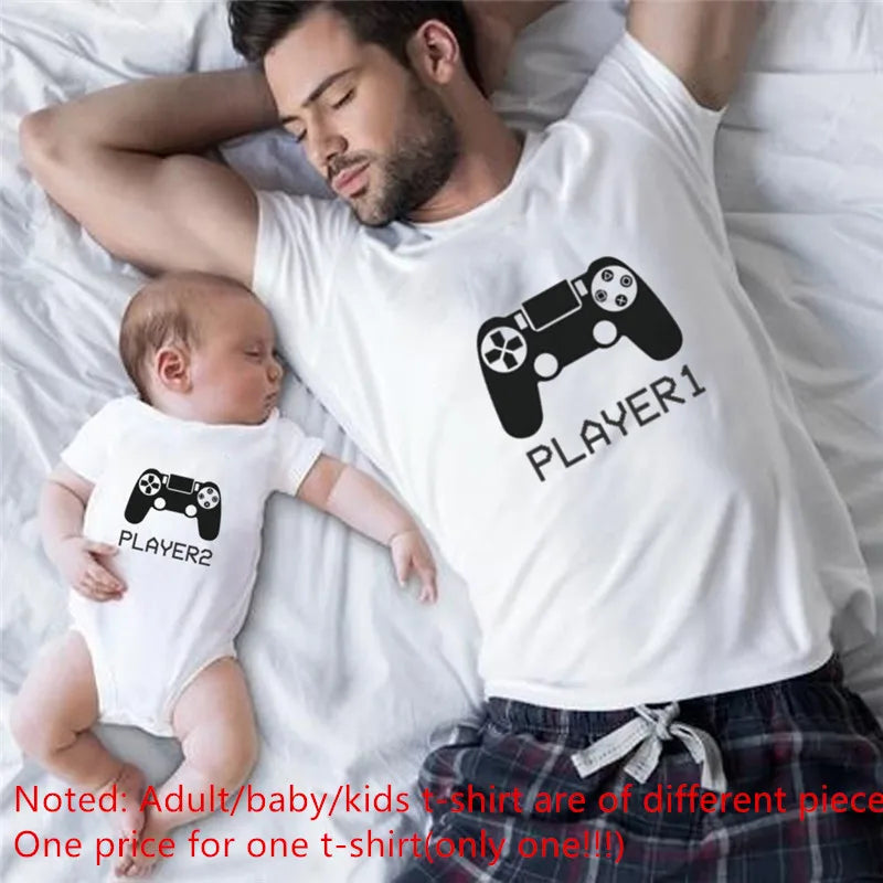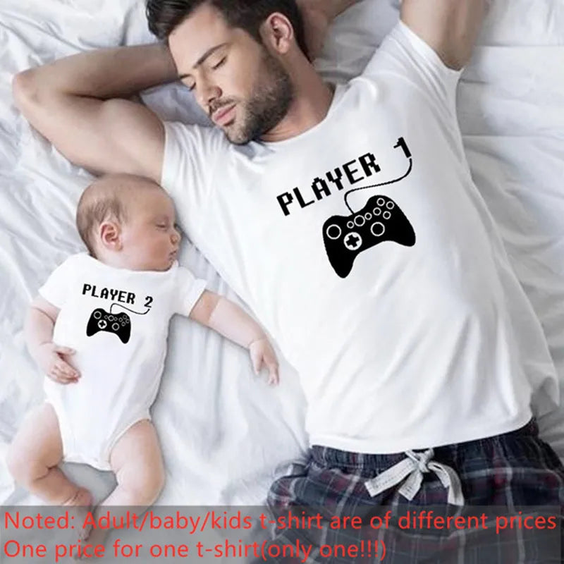 Celebrate family time in style with our Player 1/Player 2 Matching Family T-Shirts. Perfect for gamers and families who love to have fun together, these matching outfits are designed to bring a sense of unity and joy to your casual wardrobe. Made from high-quality materials, these t-shirts and bodysuits ensure comfort and durability for both adults and kids.