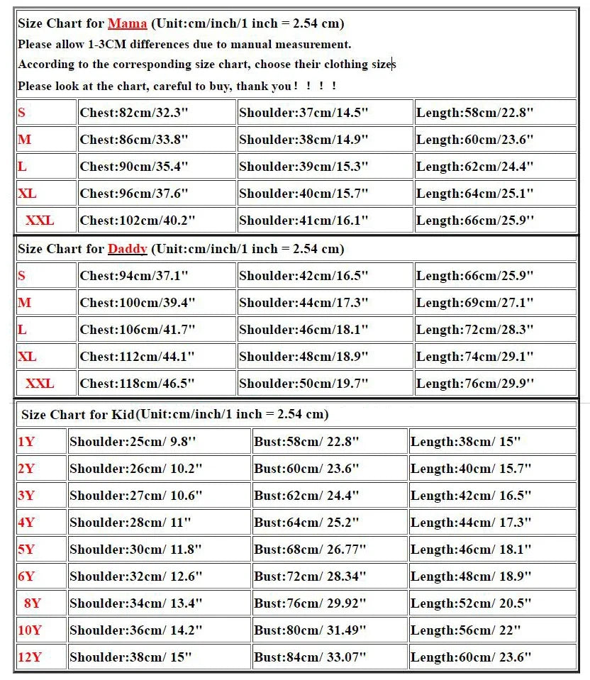 - Size Variation: Ensure you check the size chart carefully to select the correct fit for each family member.