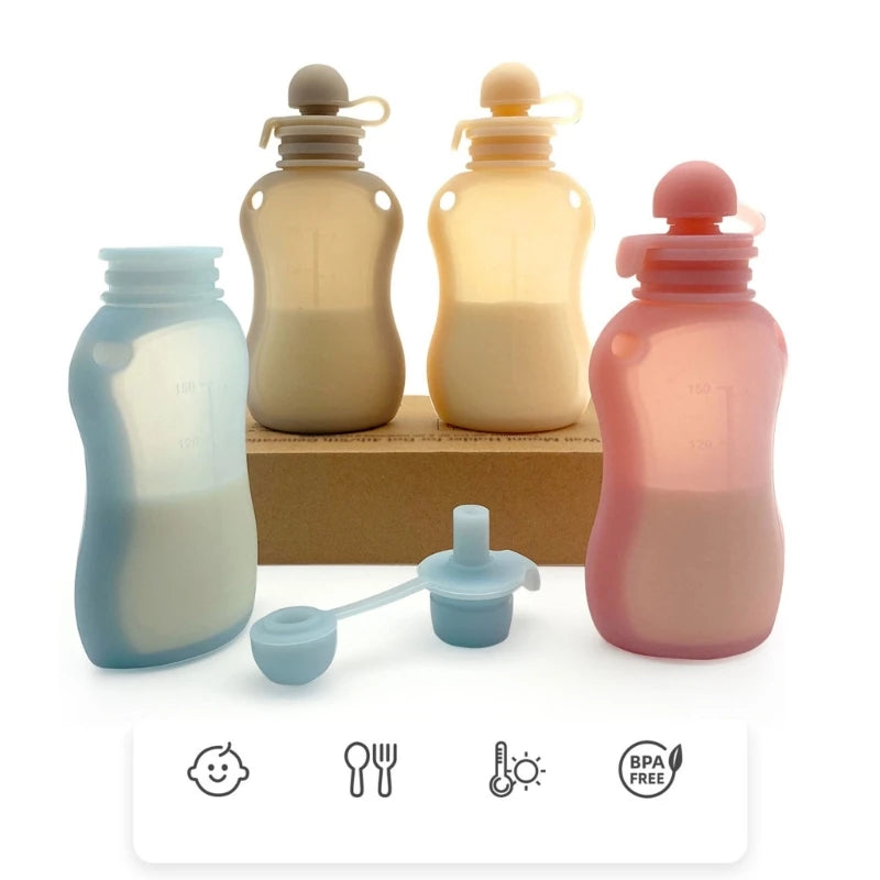 BPA Free Silicone Baby Food Pouch Reusable Refillable Milk Storage Bag Convenient Leak-proof Squeeze Baby Food Pouches Container