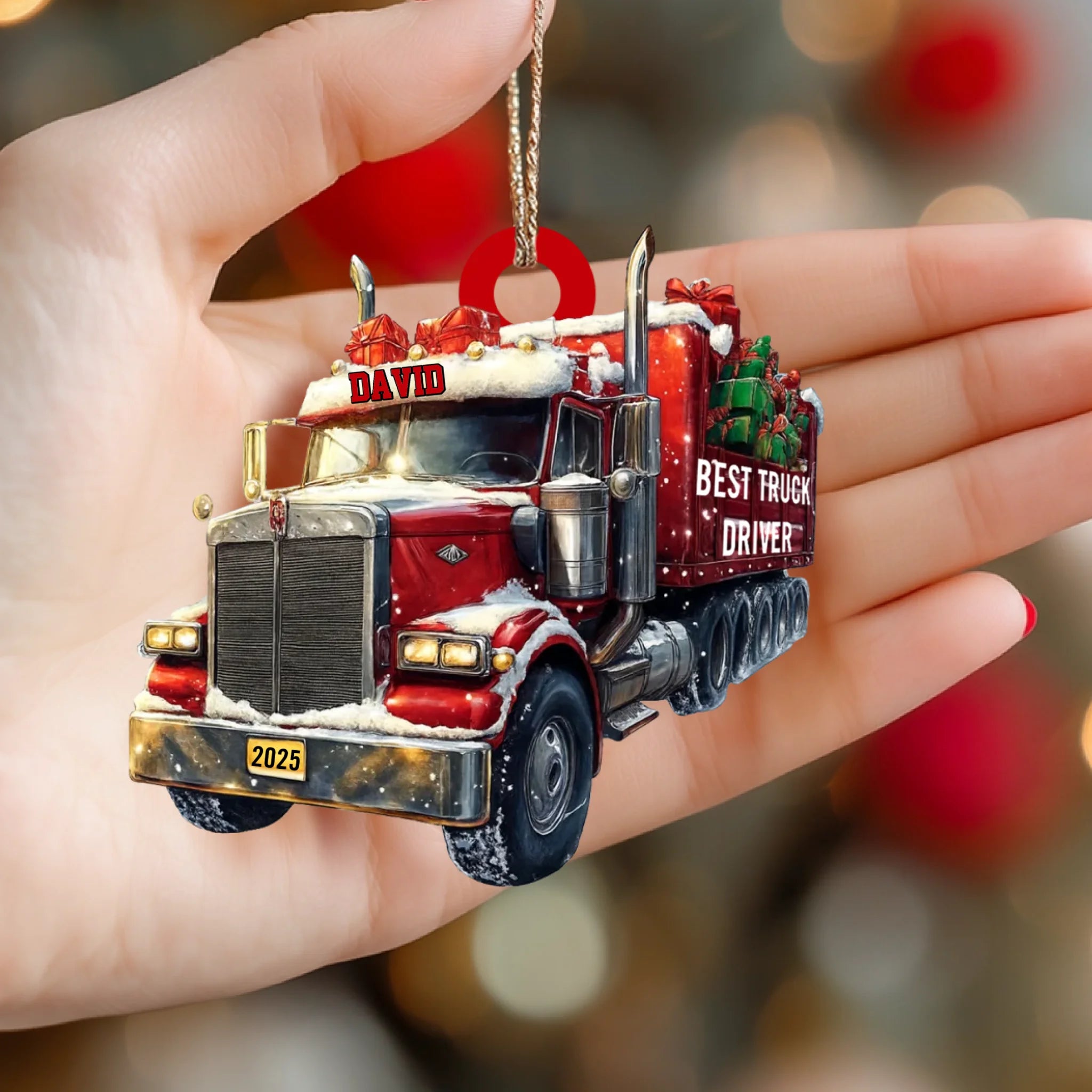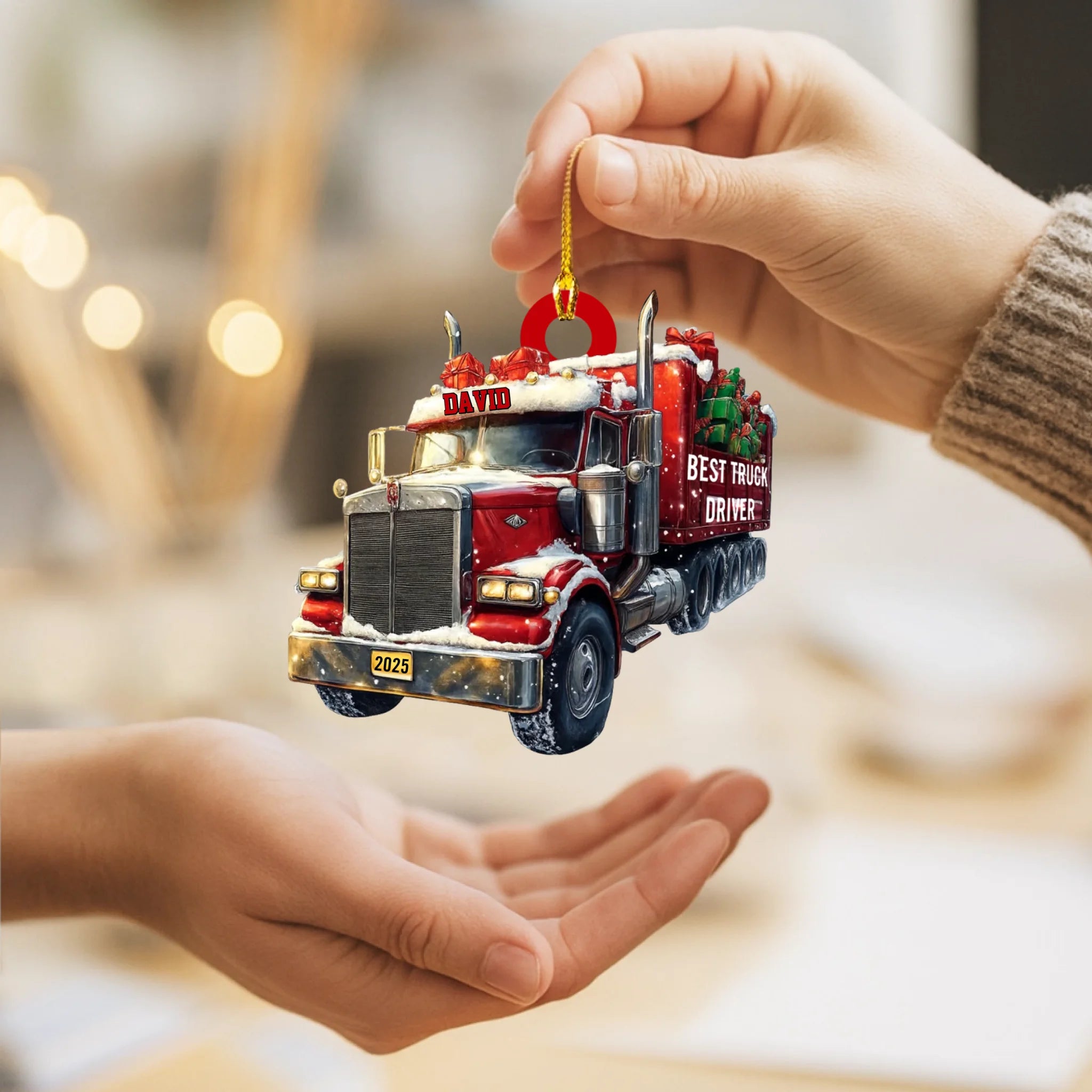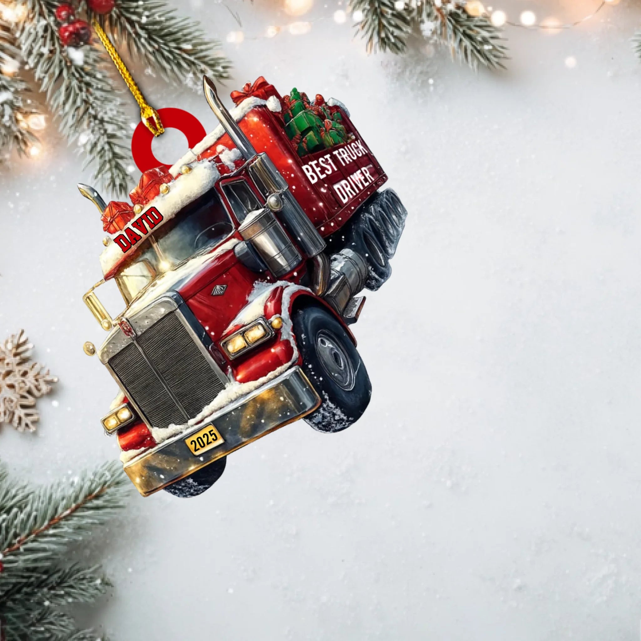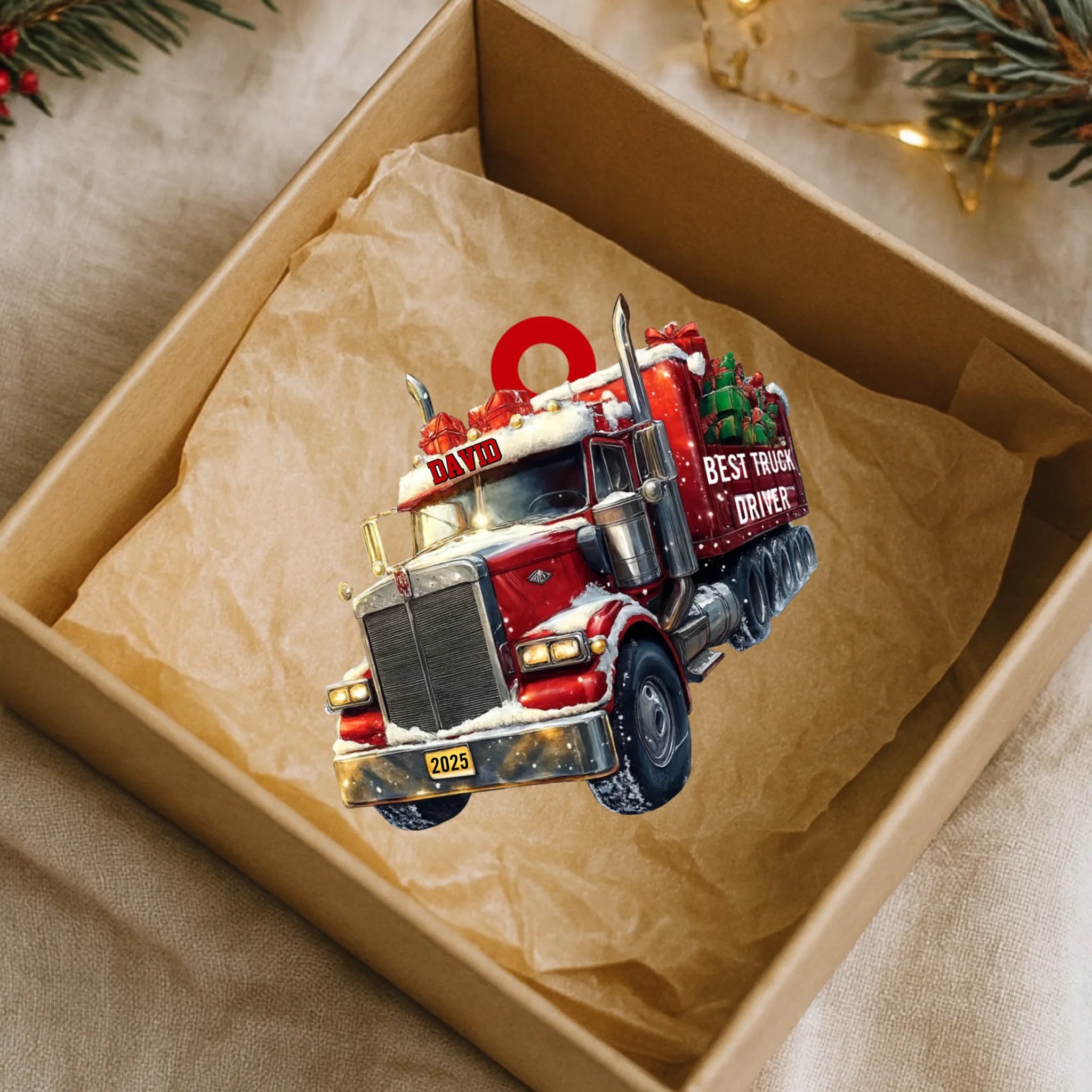 Personalized “Best Truck Driver” Christmas Ornament – Custom Name, Truck Color & Year Wooden Keepsake | Gift for Truckers, Drivers & Transportation Heroes