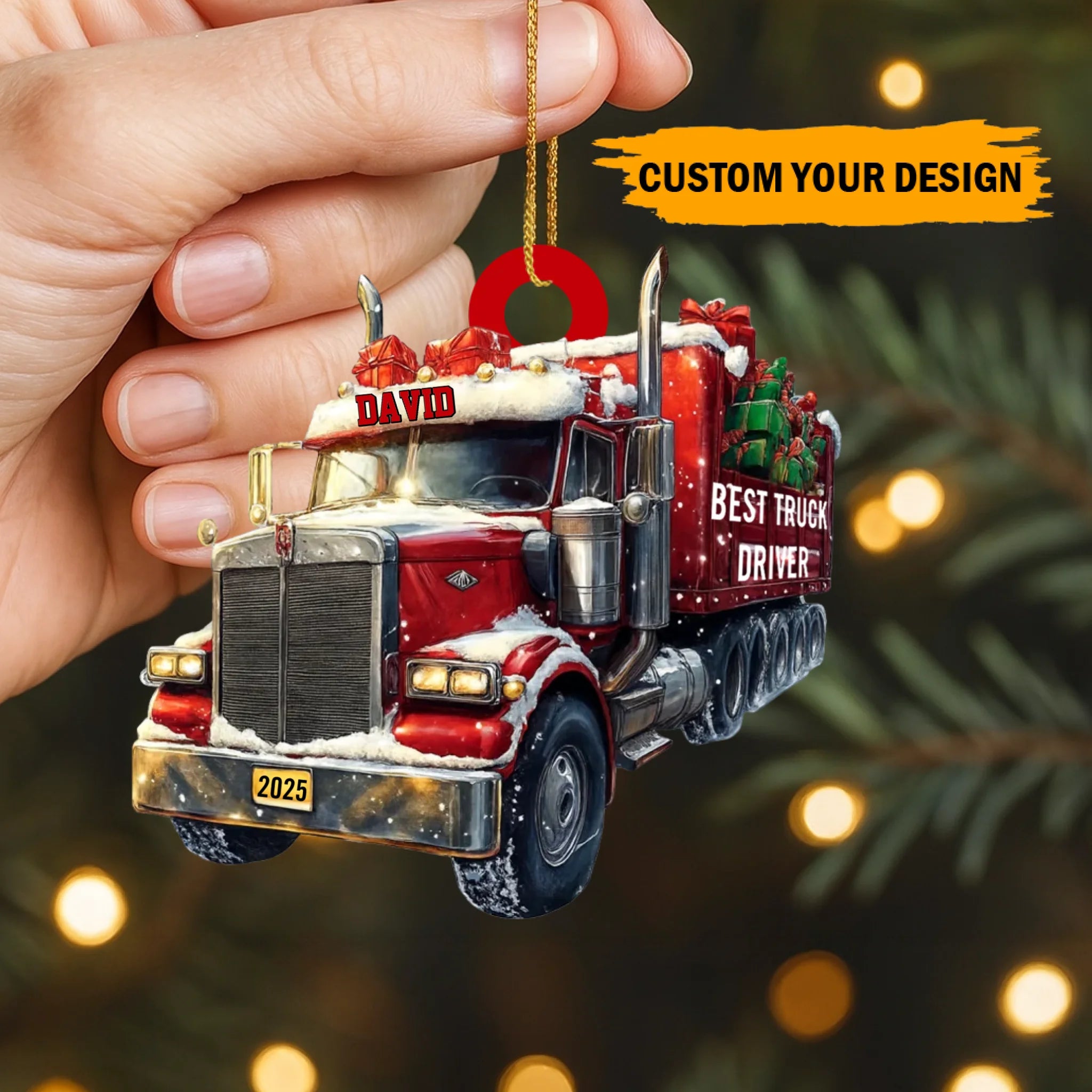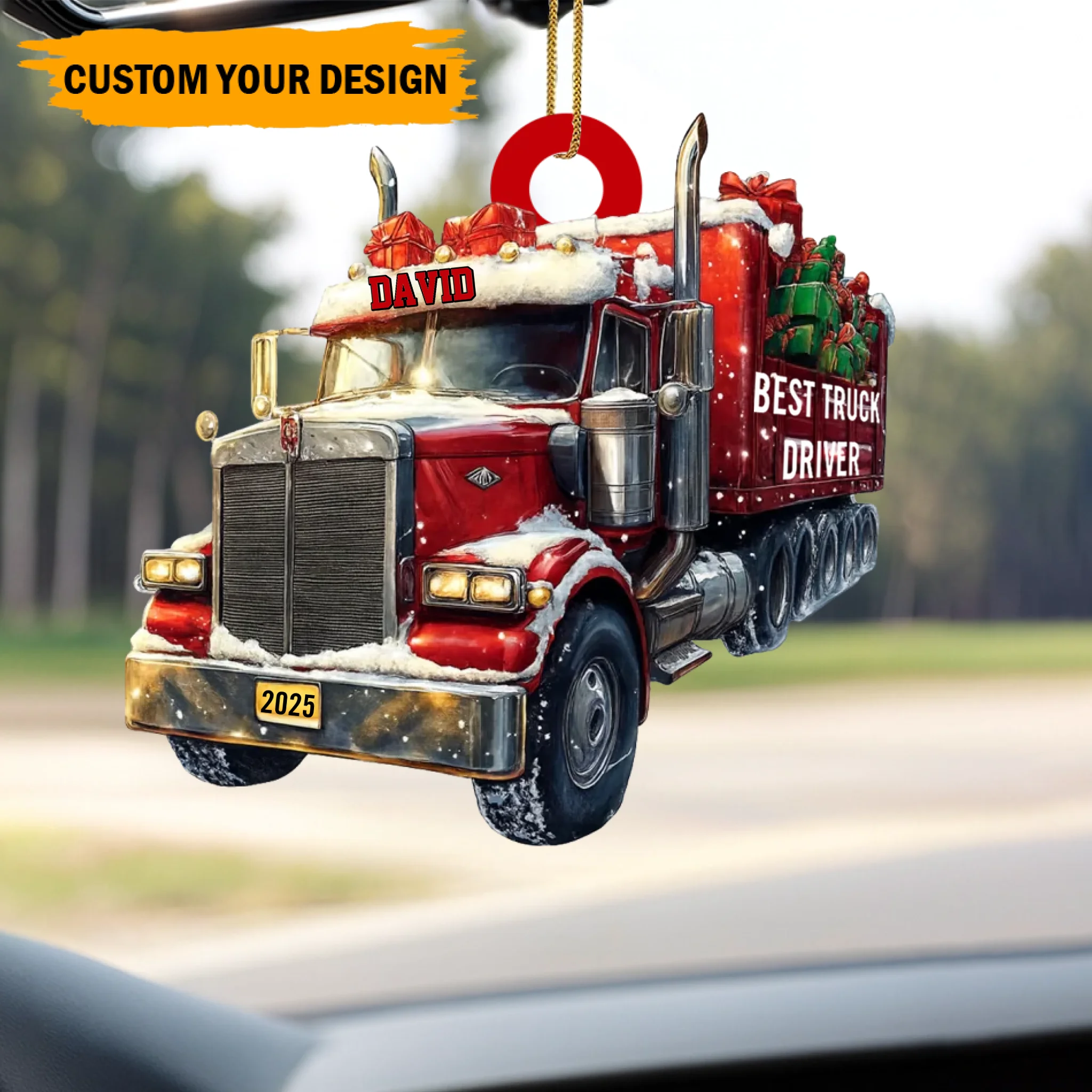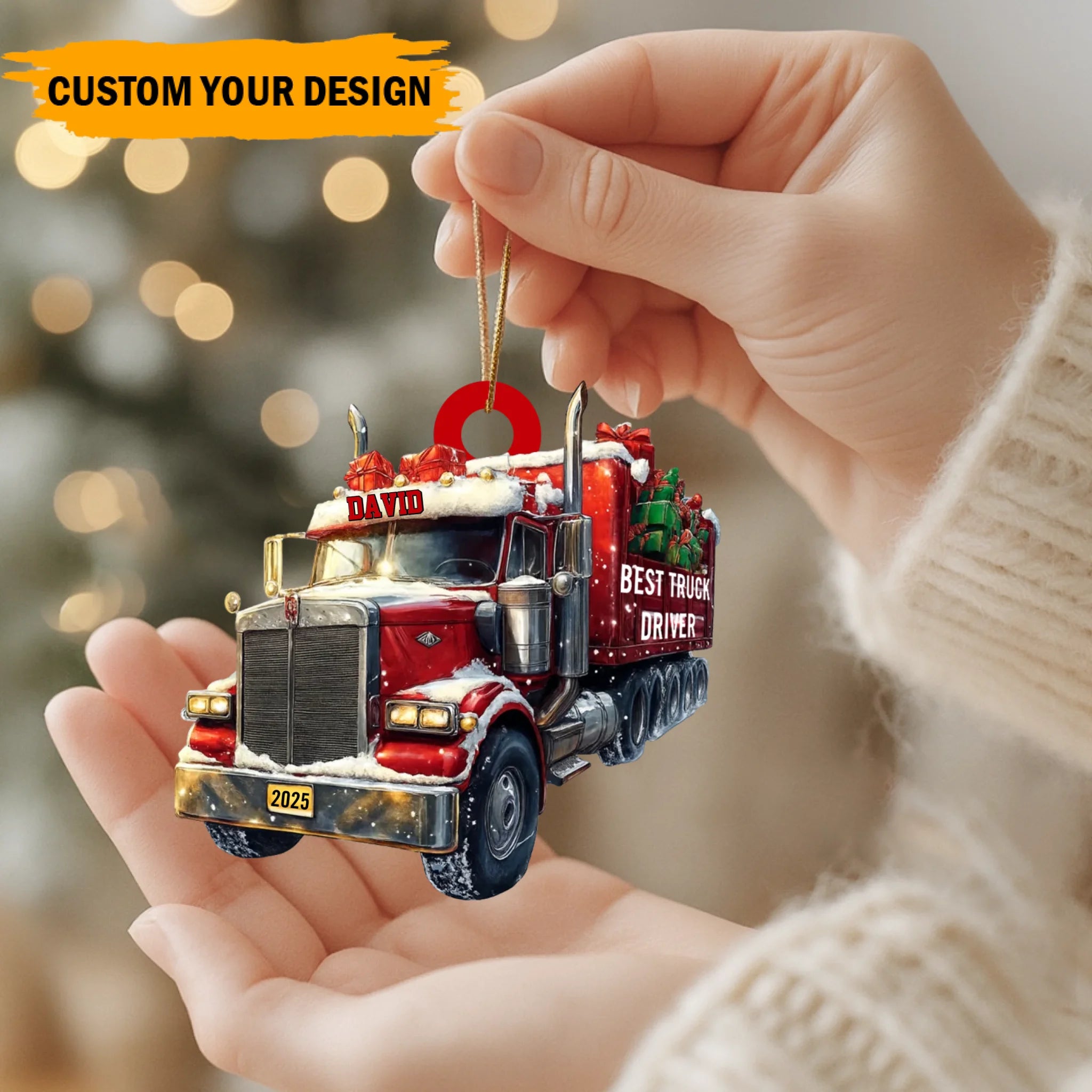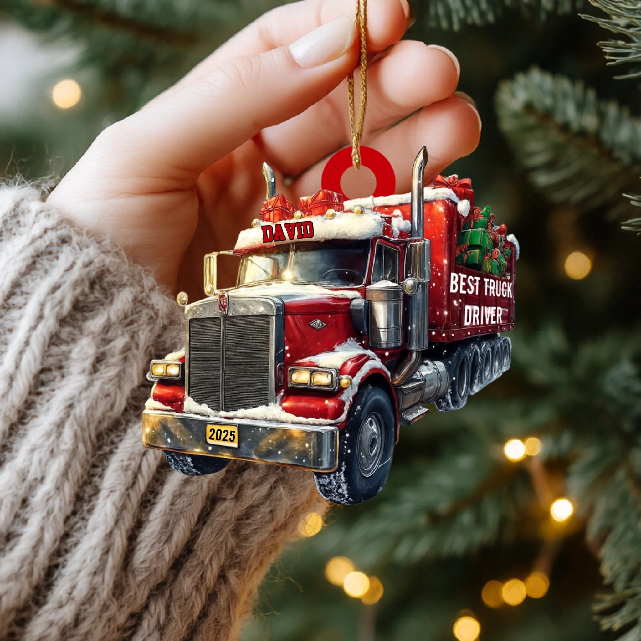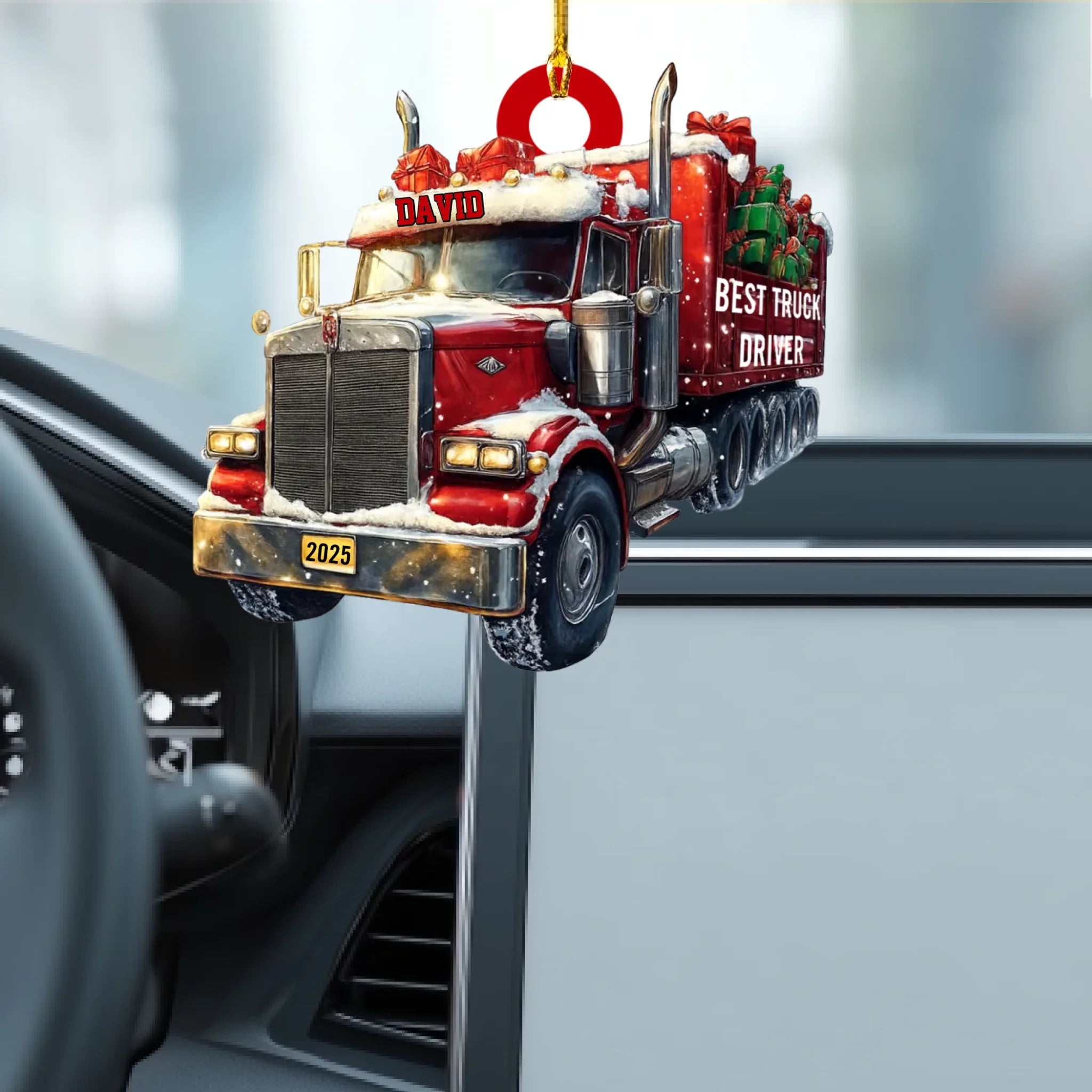 Personalized “Best Truck Driver” Christmas Ornament – Custom Name, Truck Color & Year Wooden Keepsake | Gift for Truckers, Drivers & Transportation Heroes