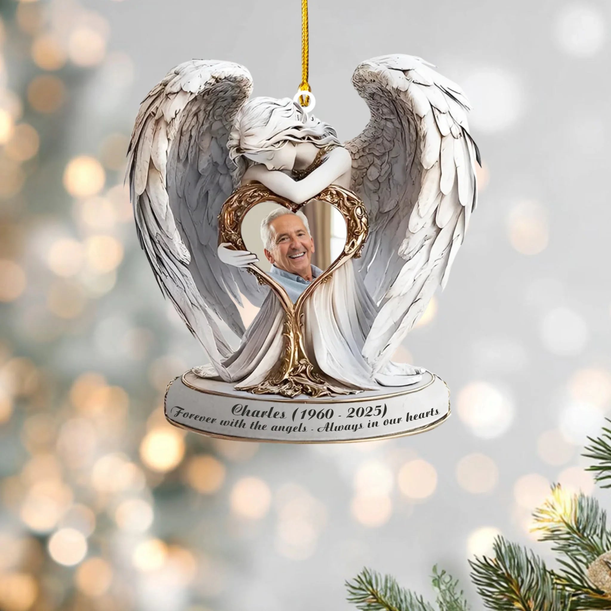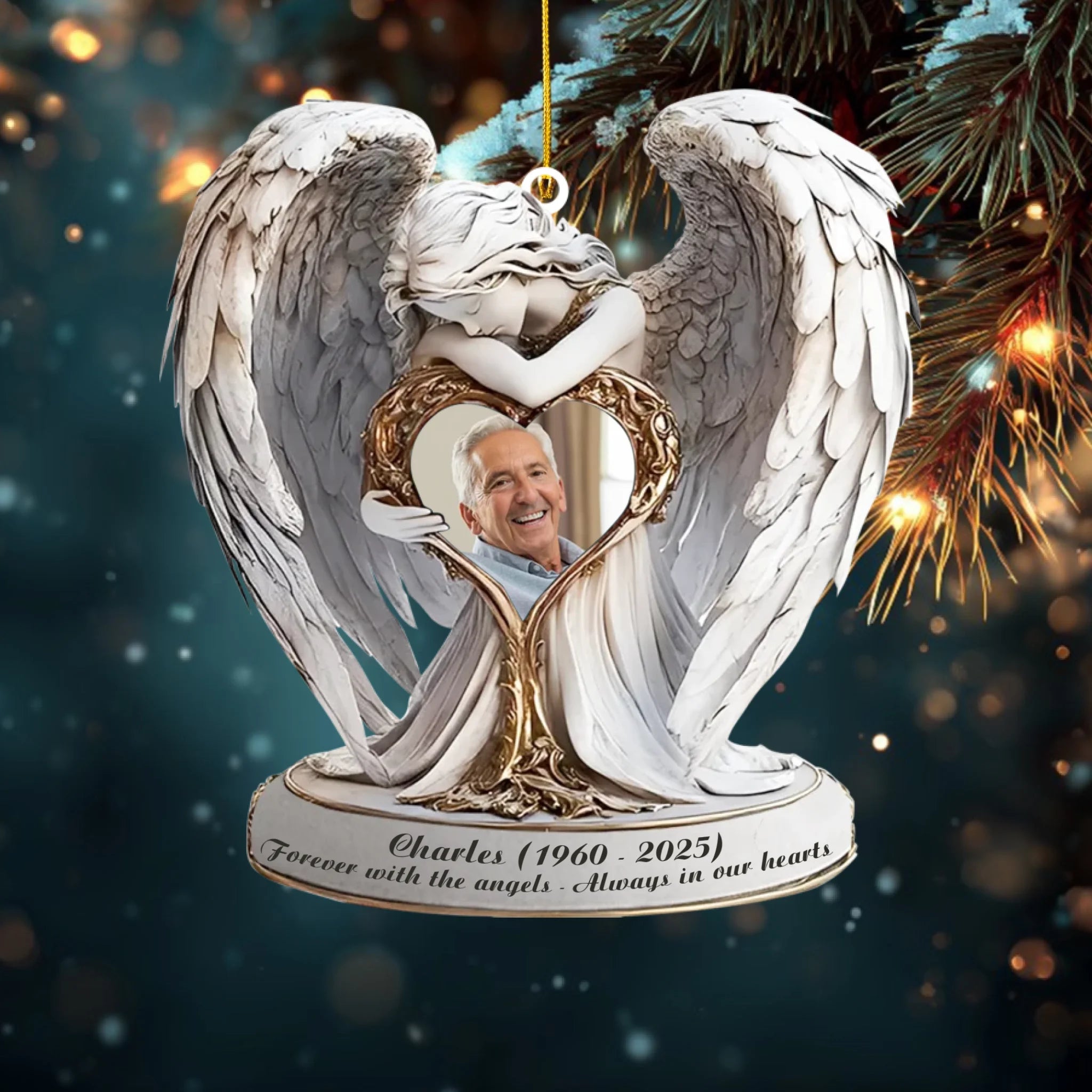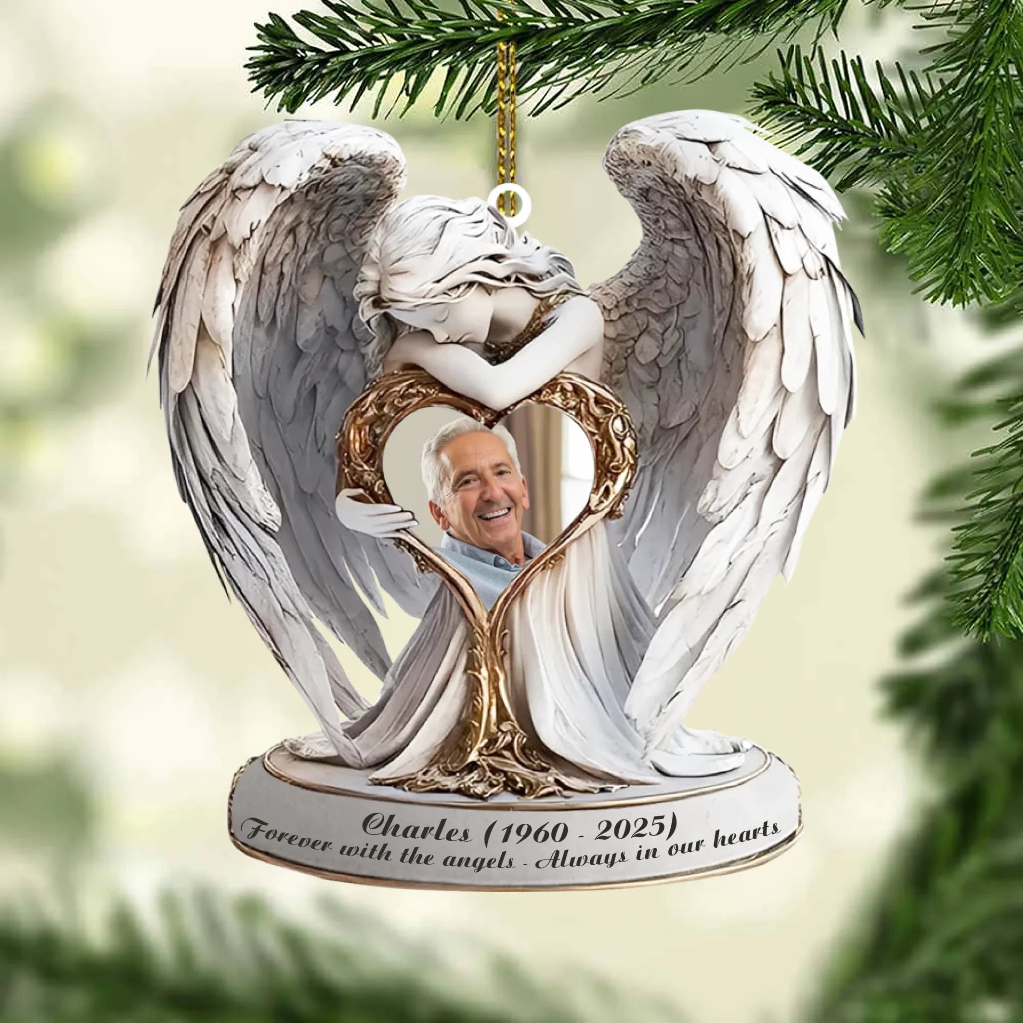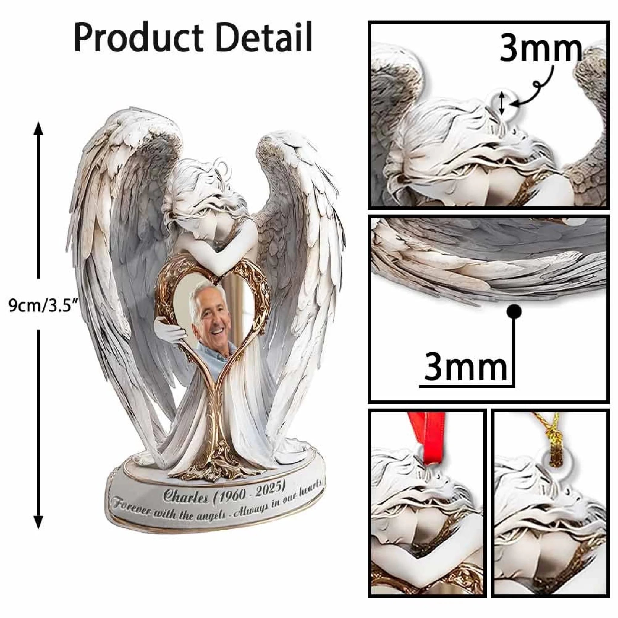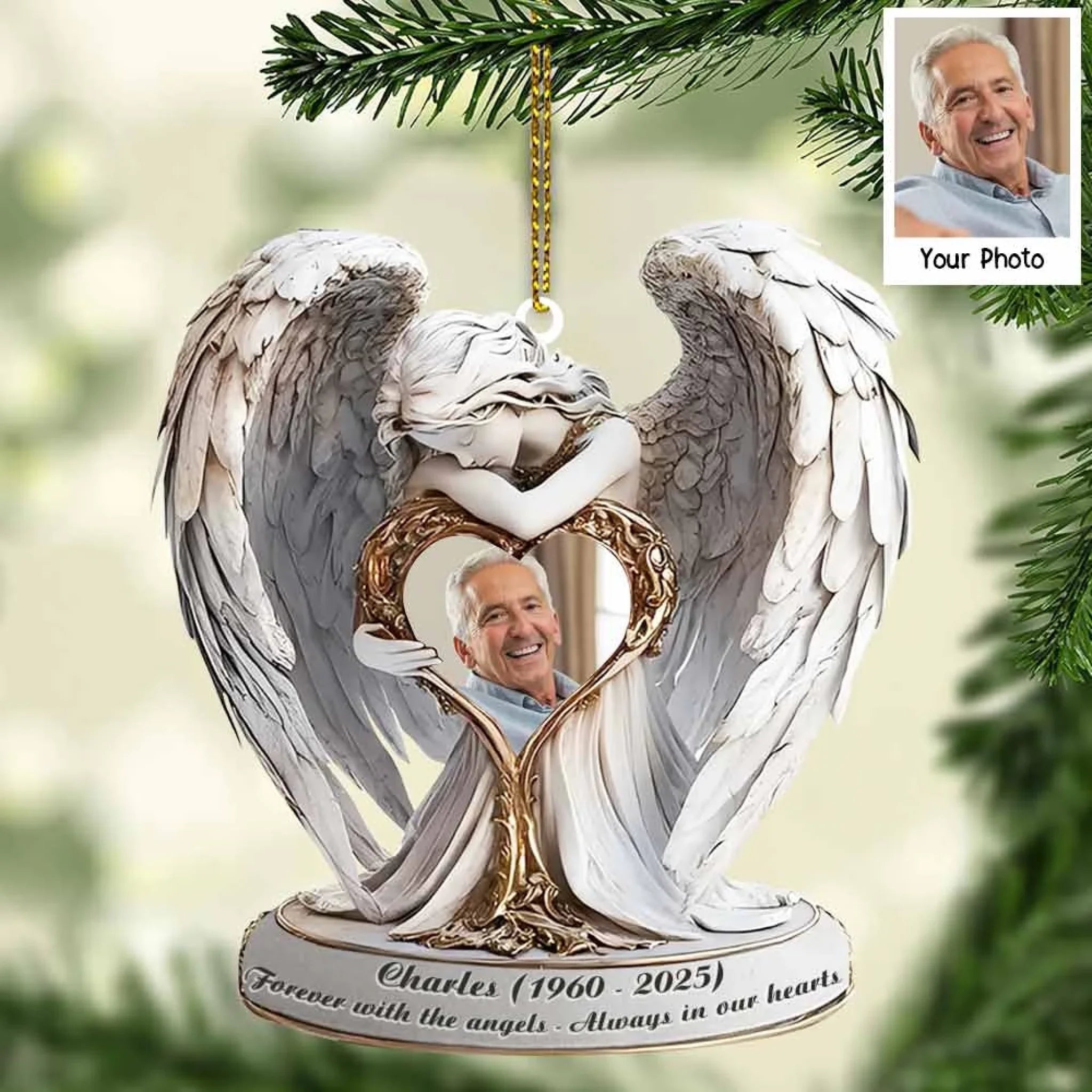 Personalized Angel Wings Memorial Acrylic Ornament - Custom Photo Plaque - "Forever with the Angels" Keepsake Gift