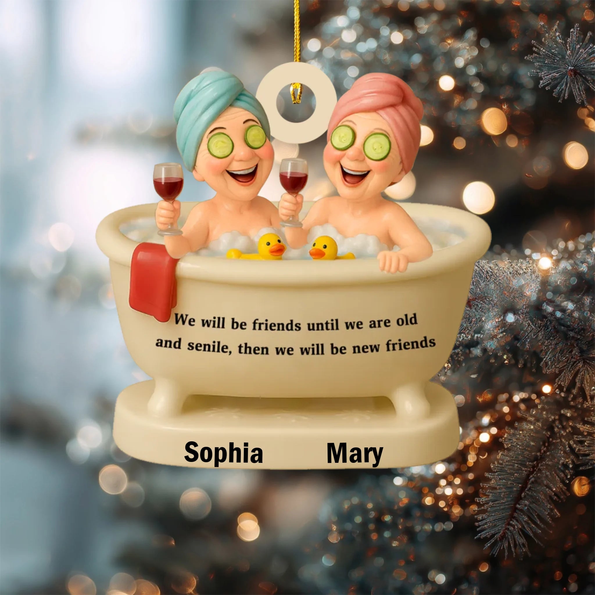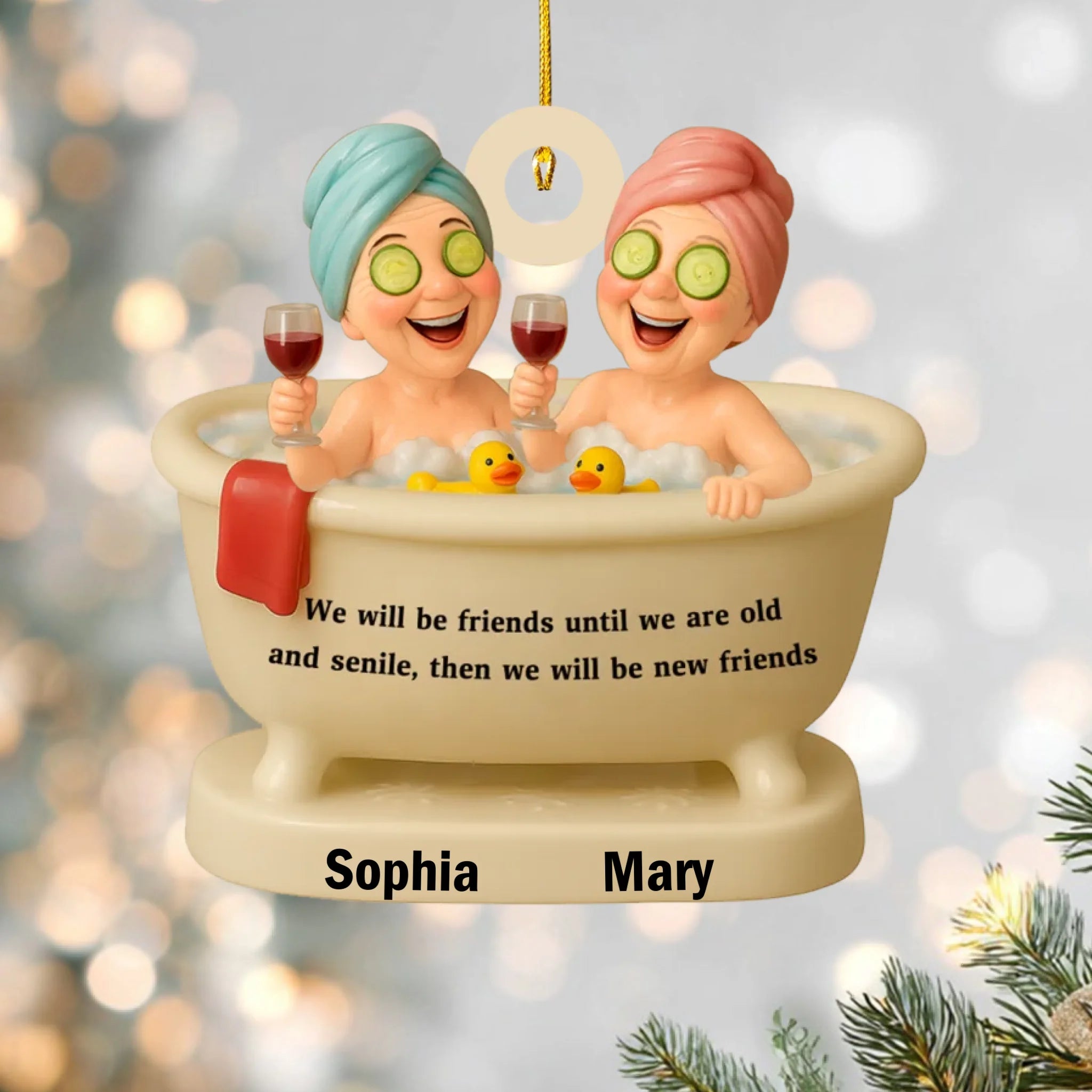 Personalized Best Friends Spa Bath Ornament – Funny Custom Gift for Women, Friendship Keepsake for Christmas, Birthday, or Holiday Decor