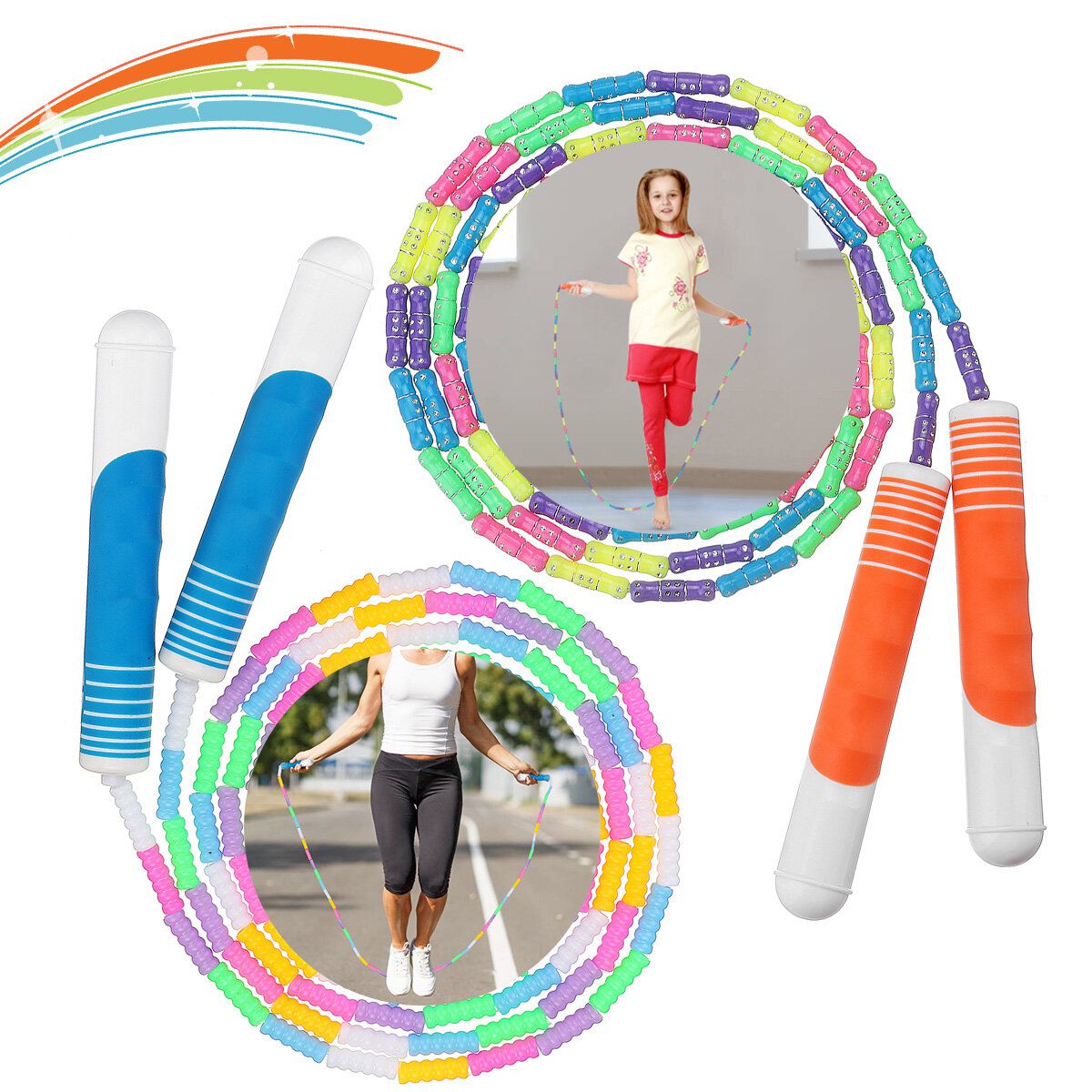 2Pcs 110in Soft Beaded Jump Rope Skipping Rope With Shatterproof Beads