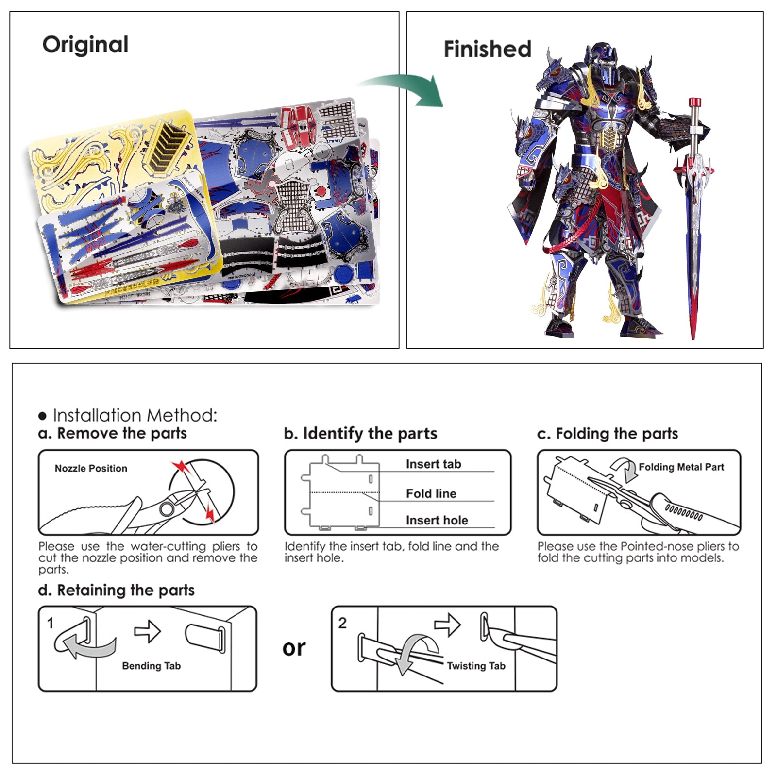 The 3D Assemble Metal Model of the God General Kinh Thien Titan simulates the god general guarding the South Gate in Chinese mythology with multi-colored stainless steel, durable material.