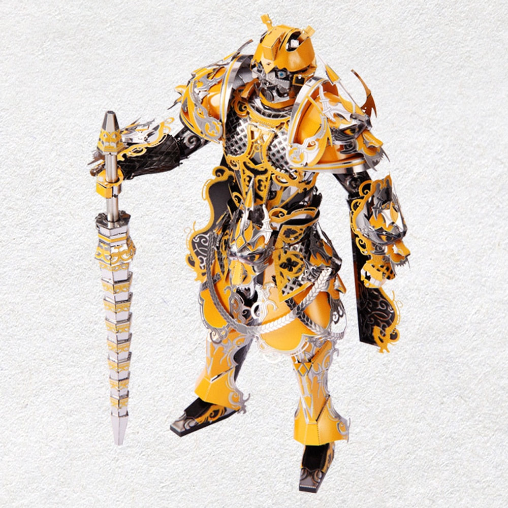 The 3D Assemble Metal Model of the God General Kim Cang King Kong simulates the god general guarding the mythical Southern Gate of China with multi-colored stainless steel, durable material.