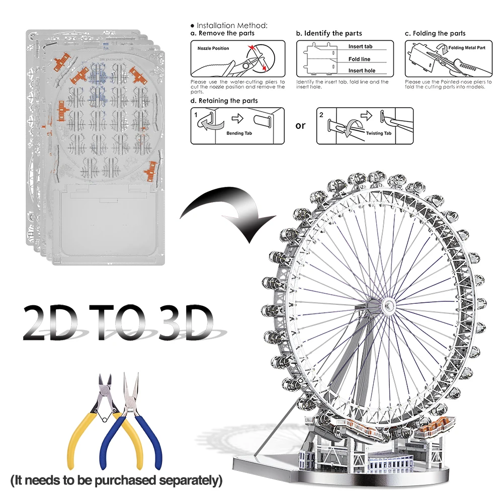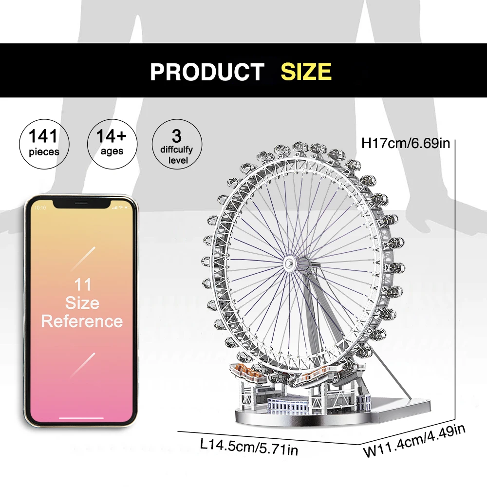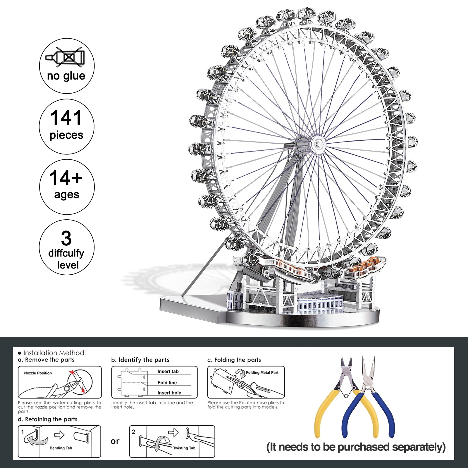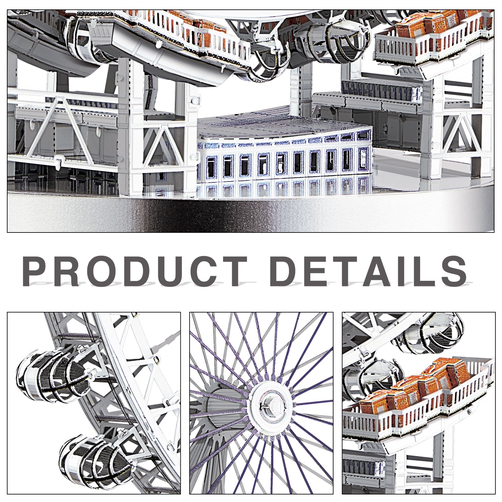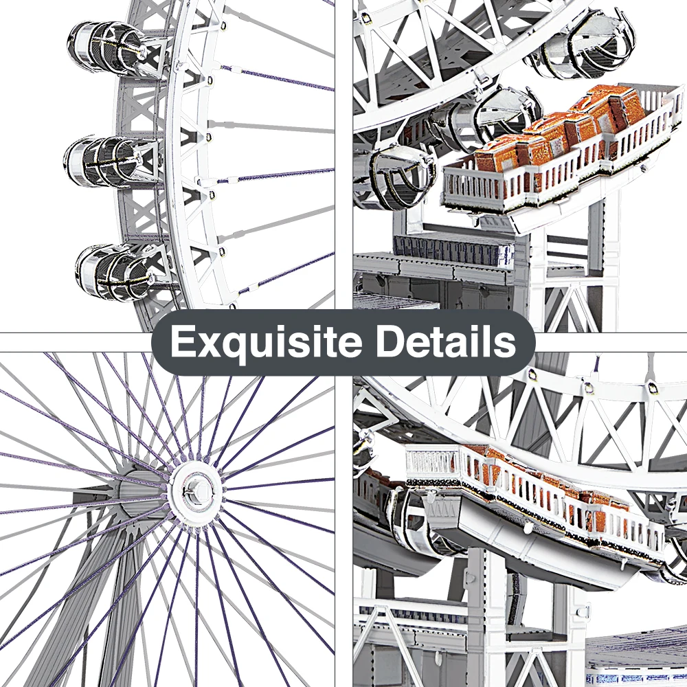 The London Eye 3D Assemble Metal Model simulates famous British architecture. It is the highest roundabout in Europe and is the most paid-to-visit tourist attraction in the world. When erected in 1999, the London Eye was the tallest observation wheel in the world.